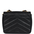 This vintage Chanel Square Chevron Envelope Flap Bag is in black caviar leather with gold hardware, featuring tonal stitching, chevron quilt, front CC turnlock closure, exterior back slip pocket, and a single interwoven black leather and gold chainlink shoulder strap.