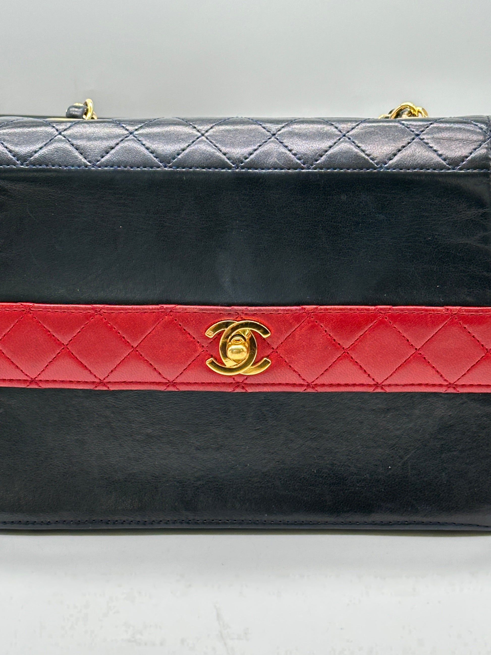 Vintage Chanel Trapizoid Bag Red And Navy Blue