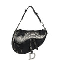 Vintage Christian Dior Saddle Bag Gunmetal Python and Black Leather Silver Hardware