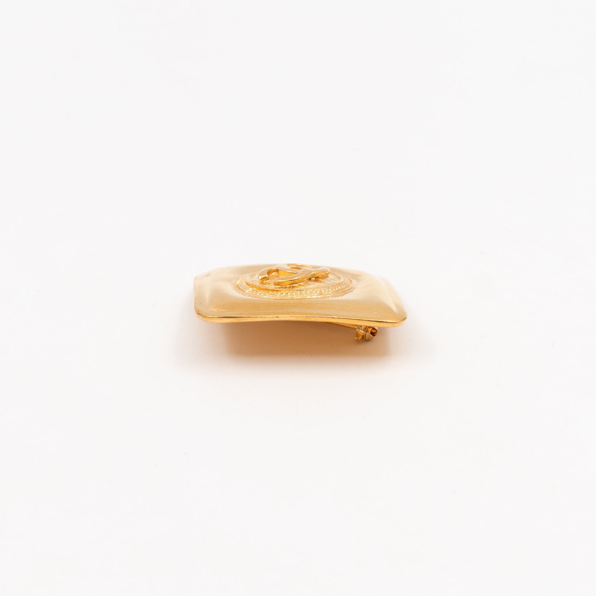 This is a Chanel diamond shape brooch pin. Made in gold tone metal with a beautiful texture detail. Stylish addition to any outfit.