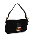 Vintage Fendi Baguette Bag Black Suede Gold Hardware