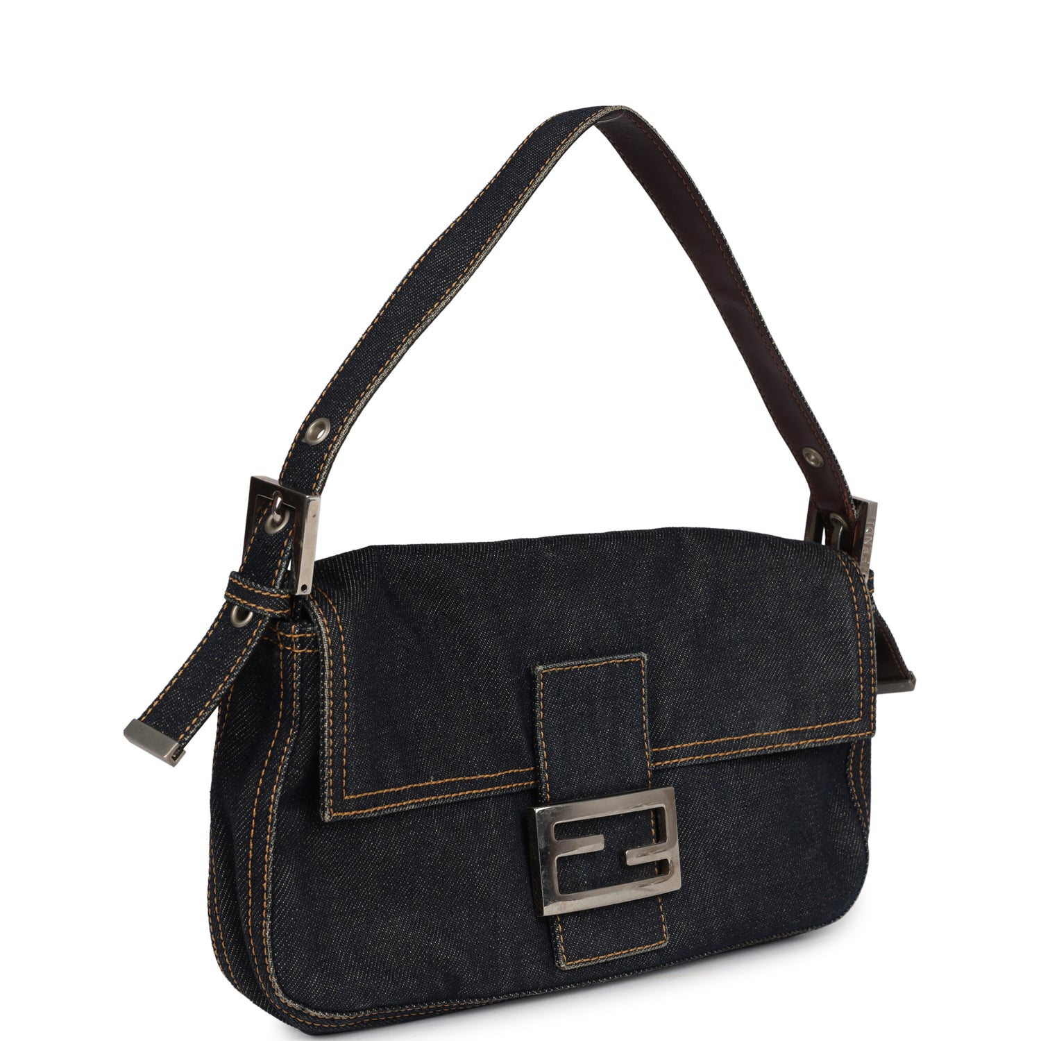 Vintage Fendi Baguette Bag Dark Blue Denim Silver Hardware