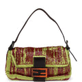 Vintage Fendi Baguette Bag Green and Red Beaded Satin Orange Python Silver Hardware