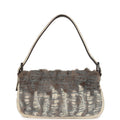 Vintage Fendi Baguette Bag Ivory Felt and Grey Rabbit Fur Silver Hardware