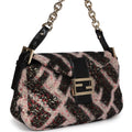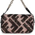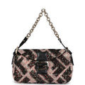 Vintage Fendi Shoulder Bag Pink and Black Zucca Wool Sequins Light Gold Hardware