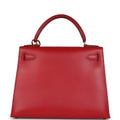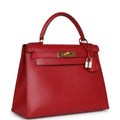 Hermes Kelly Sellier 28 Rouge Vif Box Gold Hardware