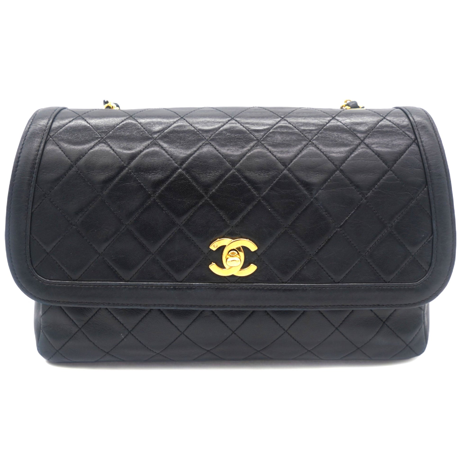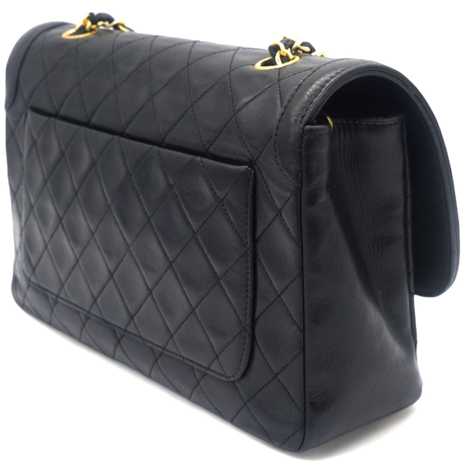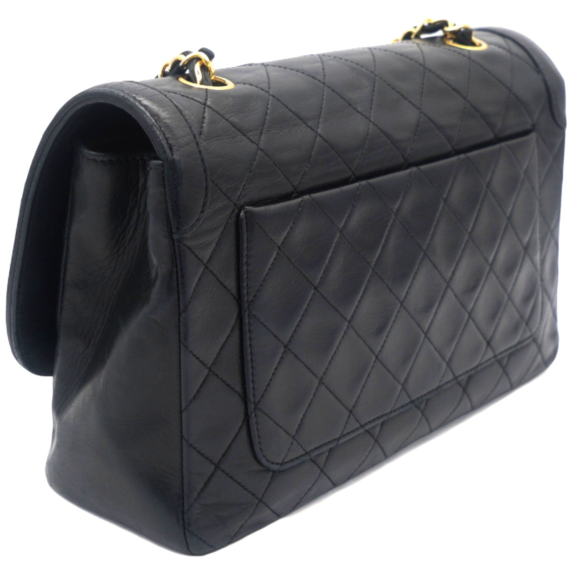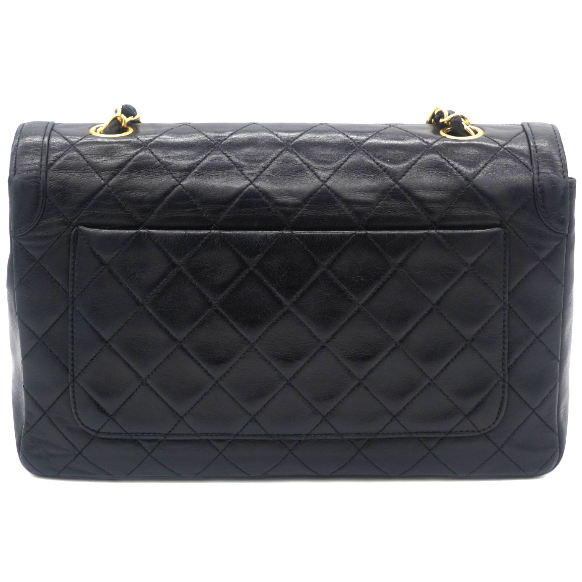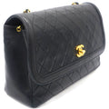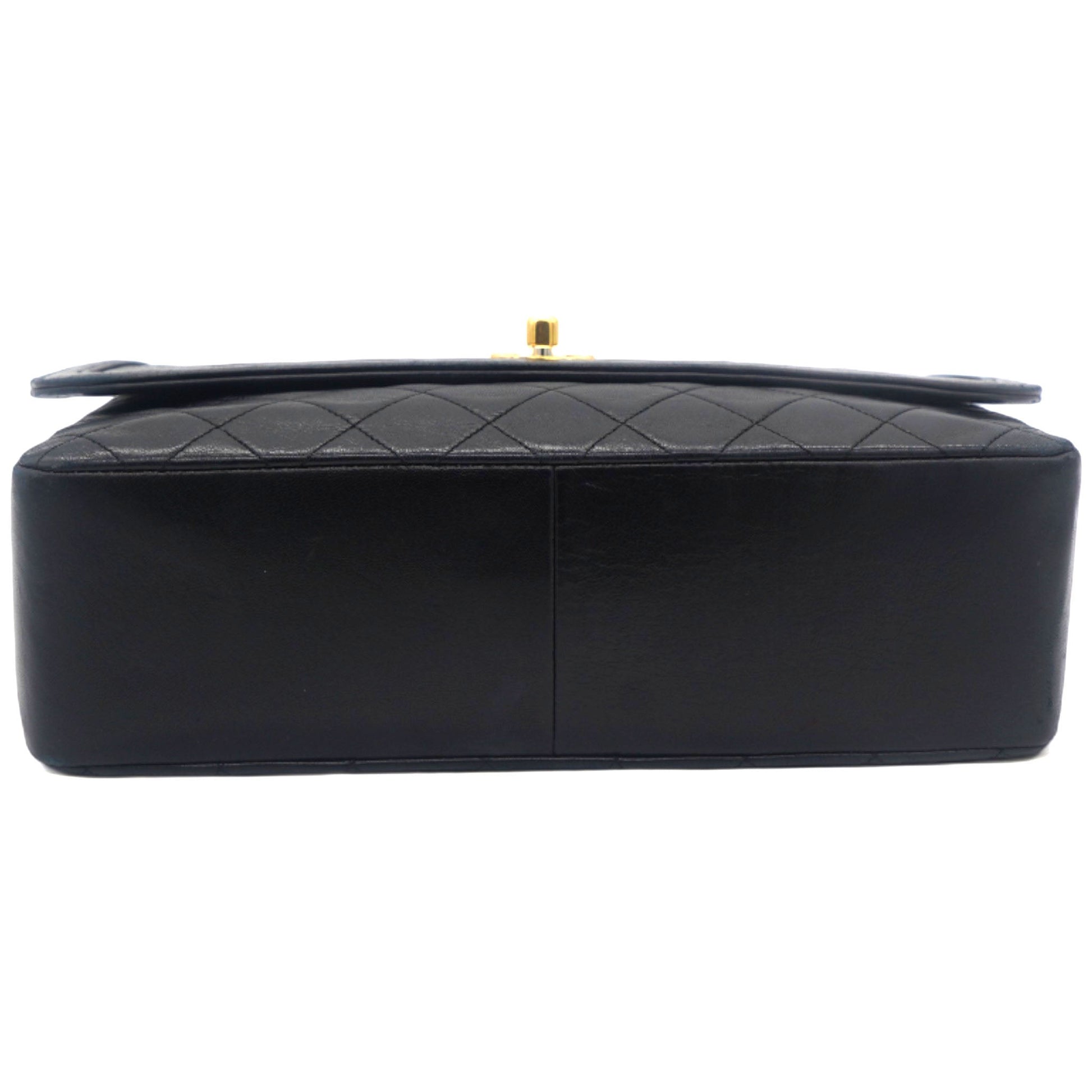 Chanel Vintage Lambskin Quilted Medium Single Flap Shoulder Bag Black