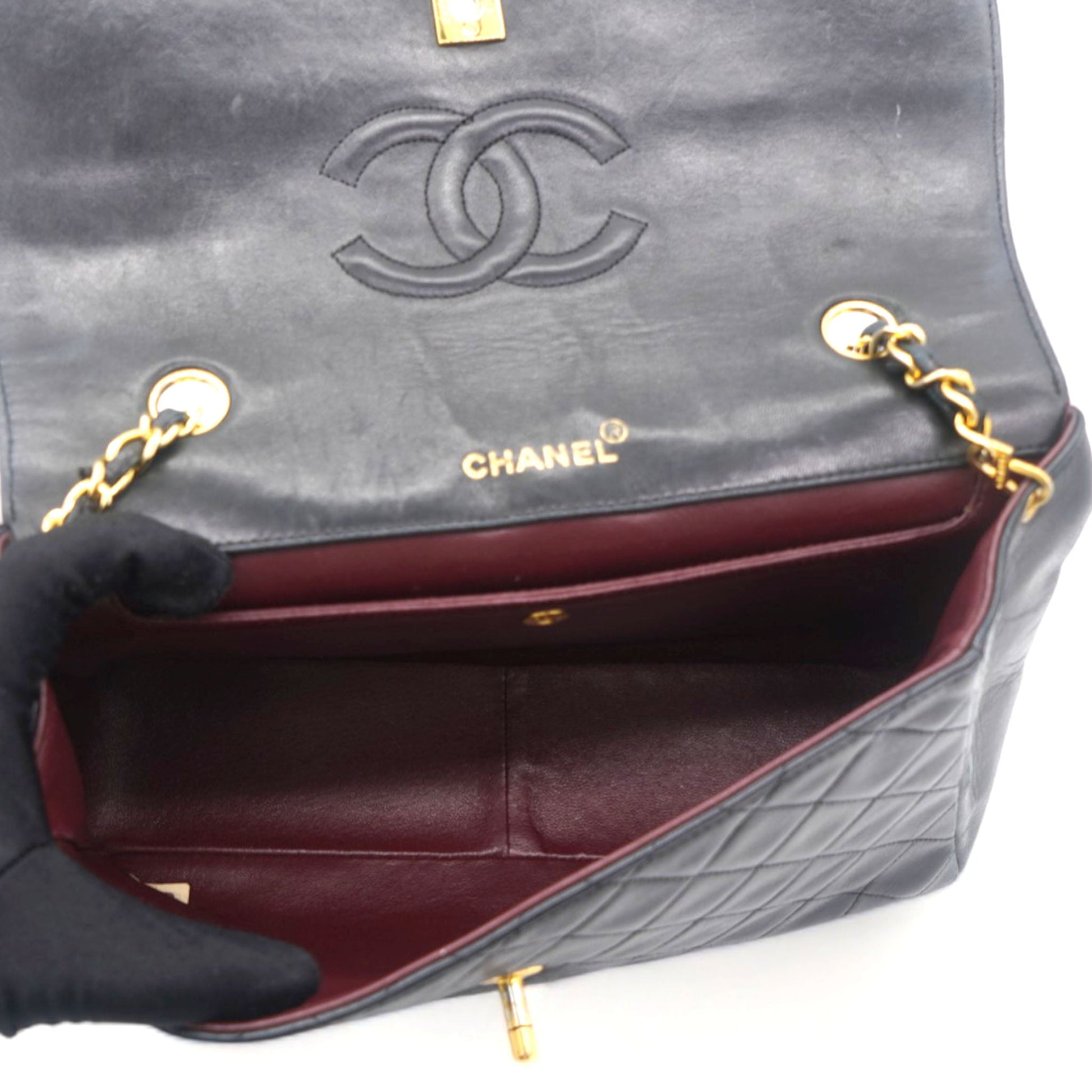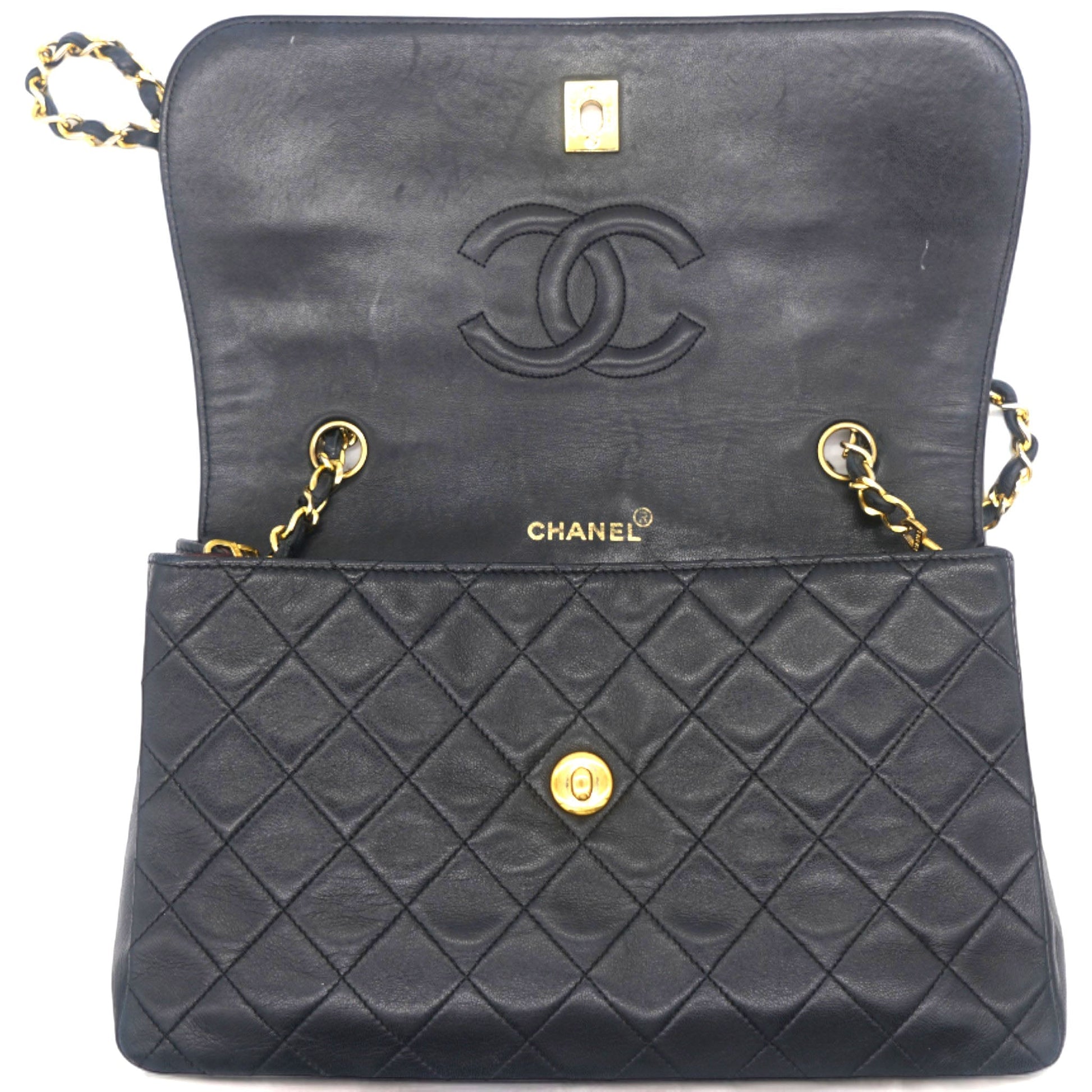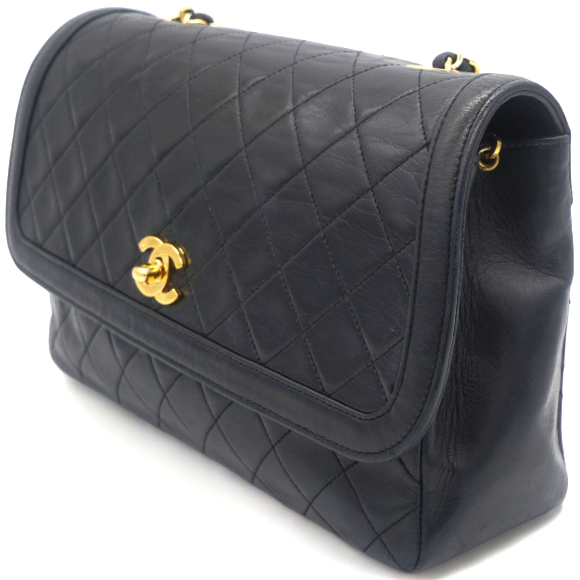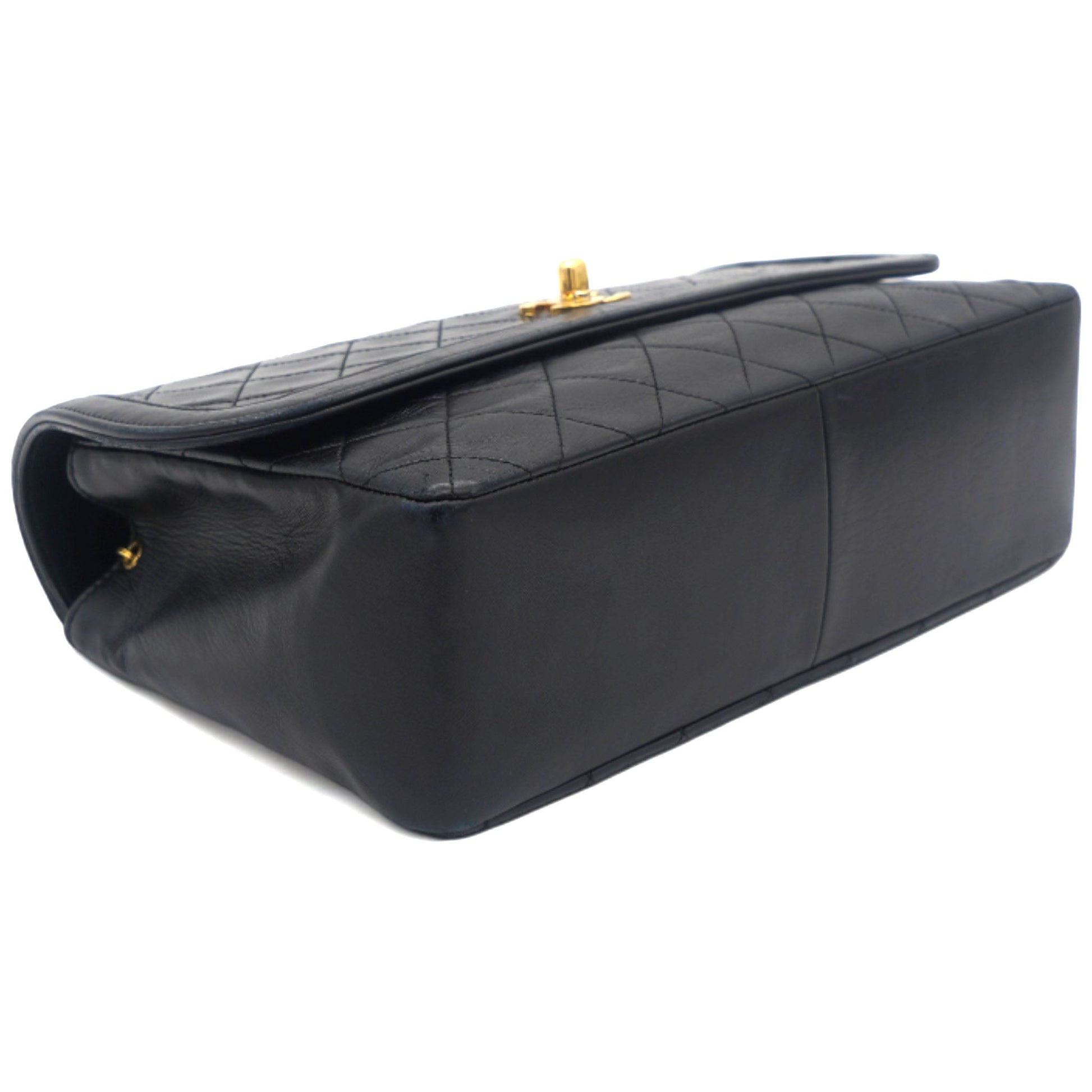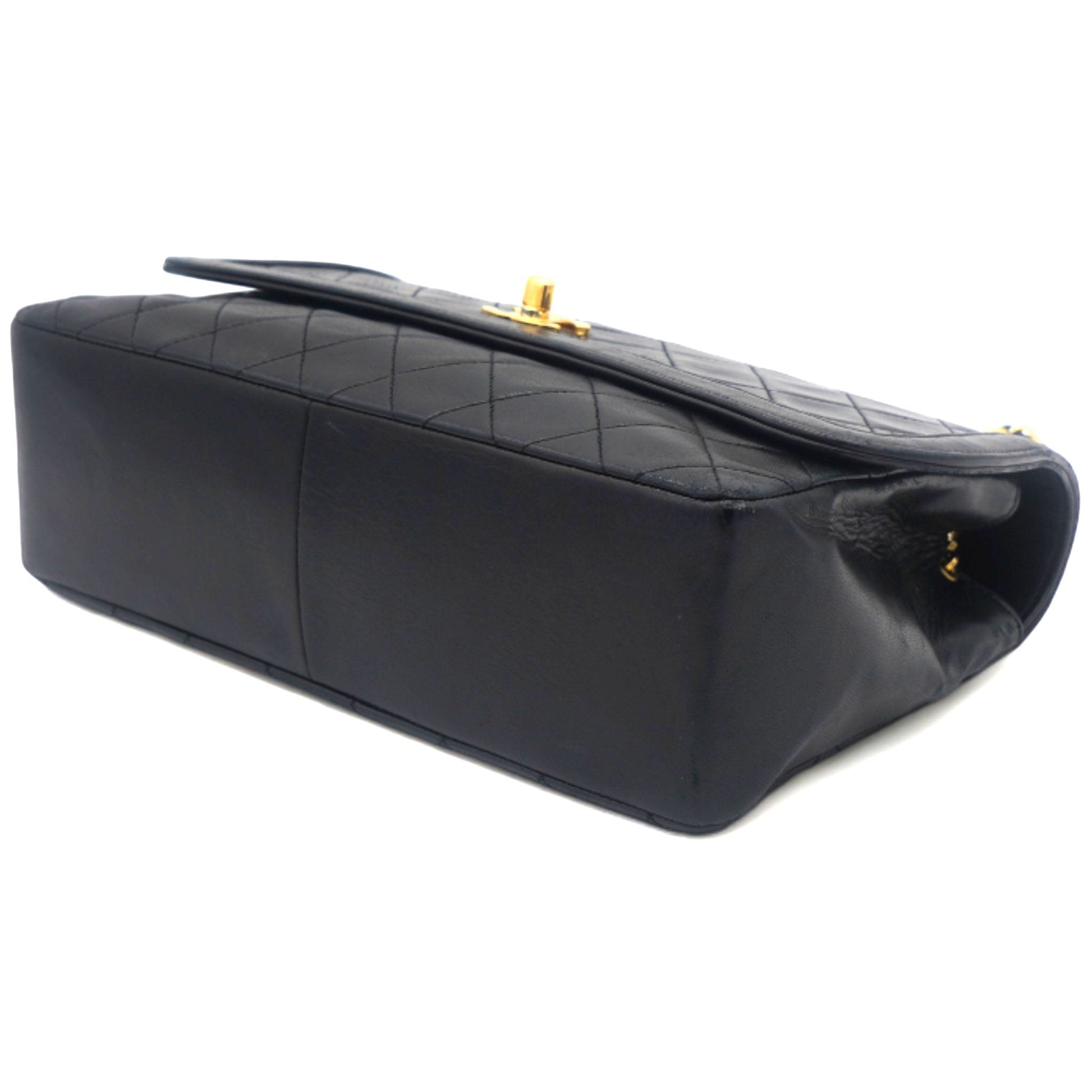 Chanel Vintage Lambskin Quilted Medium Single Flap Shoulder Bag Black