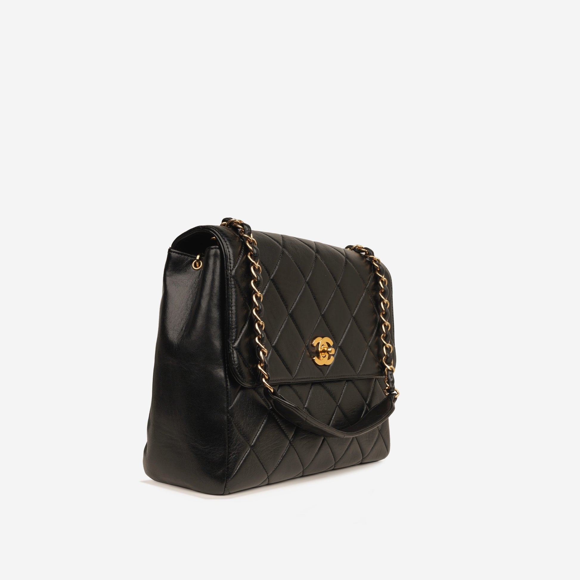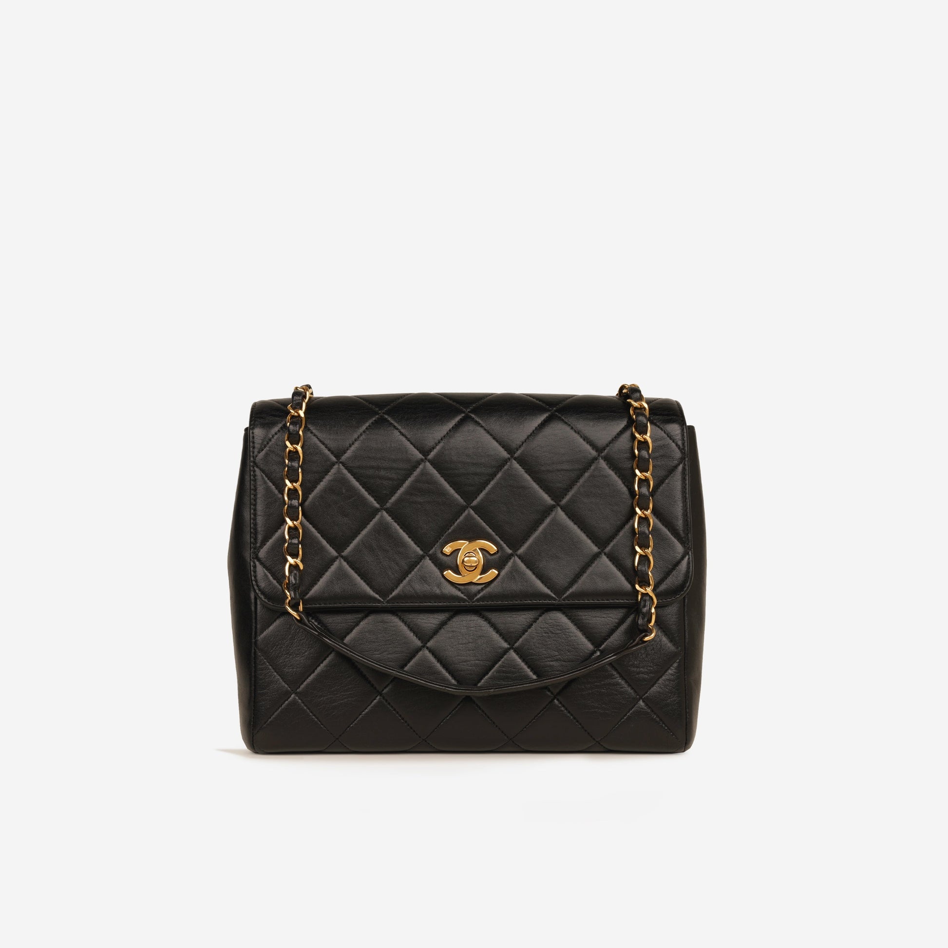 The Vintage Large Square Flap in Black Lambskin is an exquisite embodiment of timeless elegance and classic sophistication. This iconic piece is a must-have for any discerning collector or fashion enthusiast, offering a glimpse into the luxurious heritage of vintage fashion. Crafted from sumptuous black lambskin, the bag exudes a sleek and polished look that enhances its vintage charm.The soft, buttery texture of the lambskin provides a tactile experience of luxury, while its high-quality construction ensures durability.