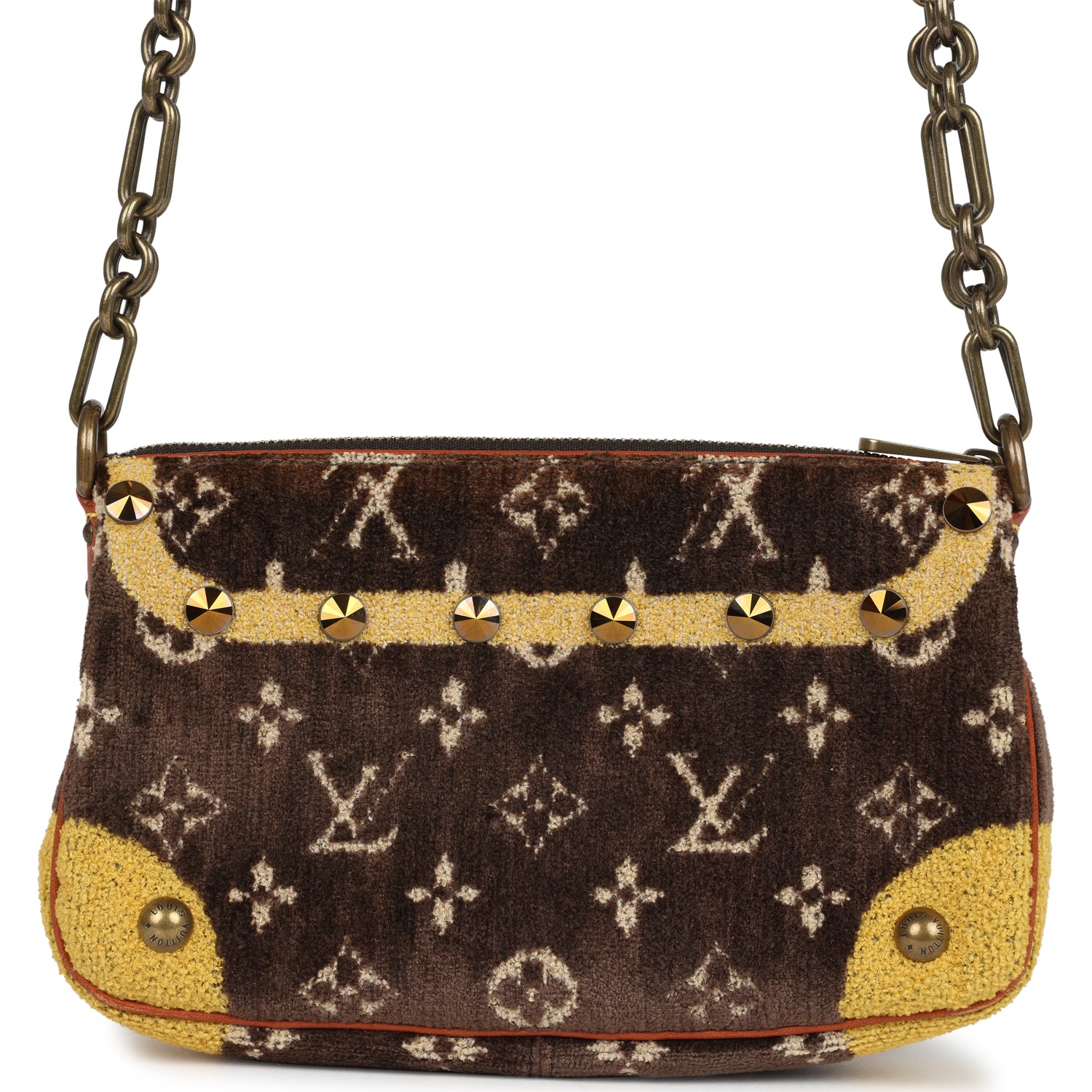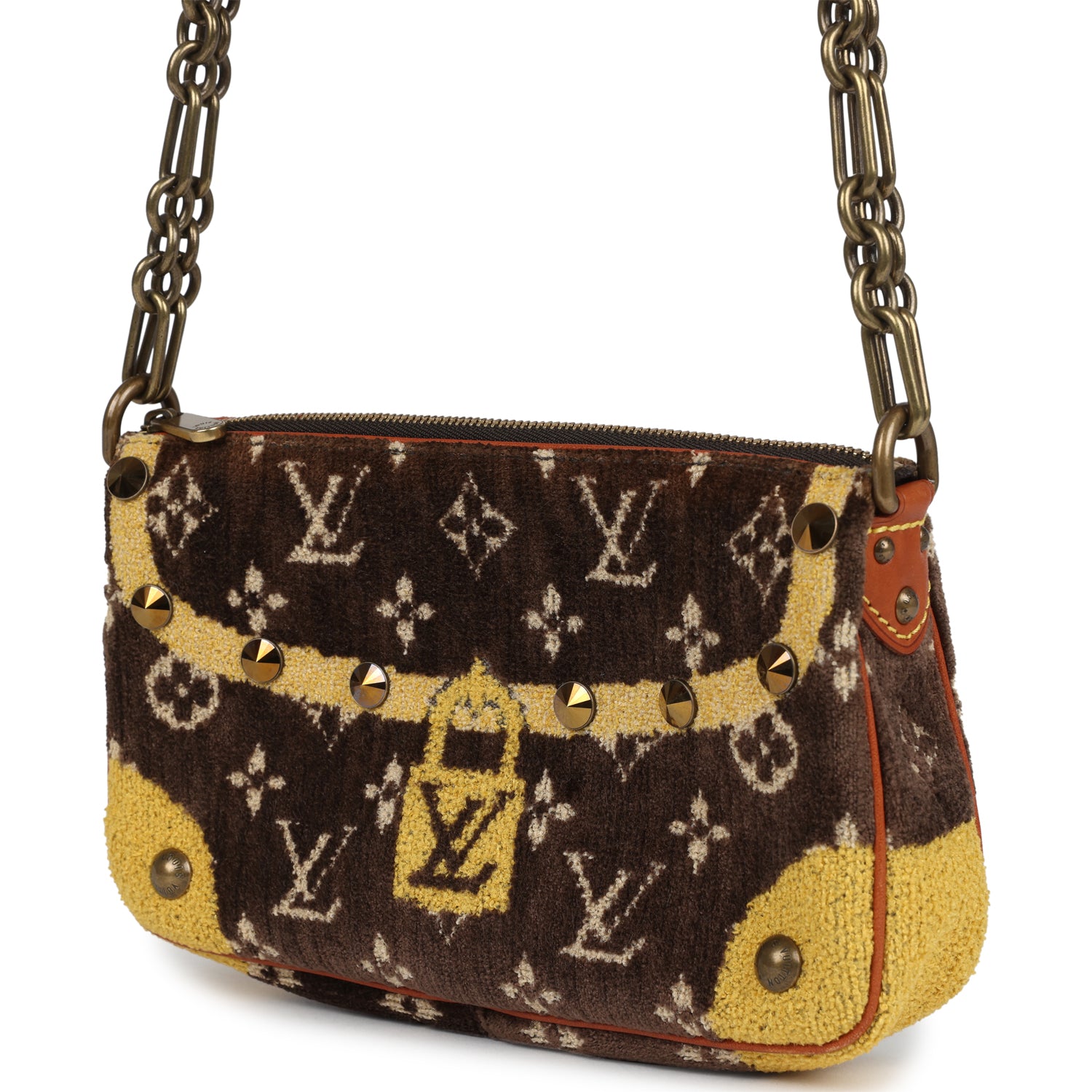 Vintage Louis Vuitton Trompe L'Oeil Pochette Brown and Yellow Velvet Brass Hardware