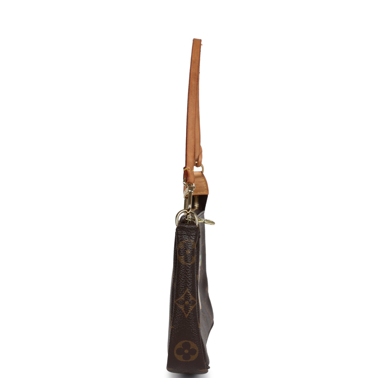 Condition: Vintage; Excellent to Mint - This bag retains it shape. There is no plastic on the hardware. The exterior coated canvas leather is clean with no signs of wear. The vachetta leather pochette strap has some signs of wear with darkening and minor staining. The interior canvas is clean with no signs of wear.
