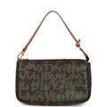 This limited edition Louis Vuitton X Stephen Sprouse Pochette Accessories Handbag features a graffiti-like Louis Vuitton logo in dark green written over the classic monogram canvas leather with gold hardware, pochette strap and zippered closure.