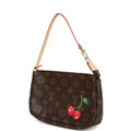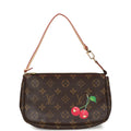 Vintage Louis Vuitton X Takashi Murakami Pochette Accessories Brown and Red Monogram Cerises Gold Hardware