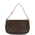 This vintage Louis Vuitton X Murakami Cerises Pochette Accessories is in brown and red monogram canvas leather with gold hardware, features two smiling cherry faces over the classic coated canvas monogram leather, a zipper closure and a detachable vachetta shoulder strap.