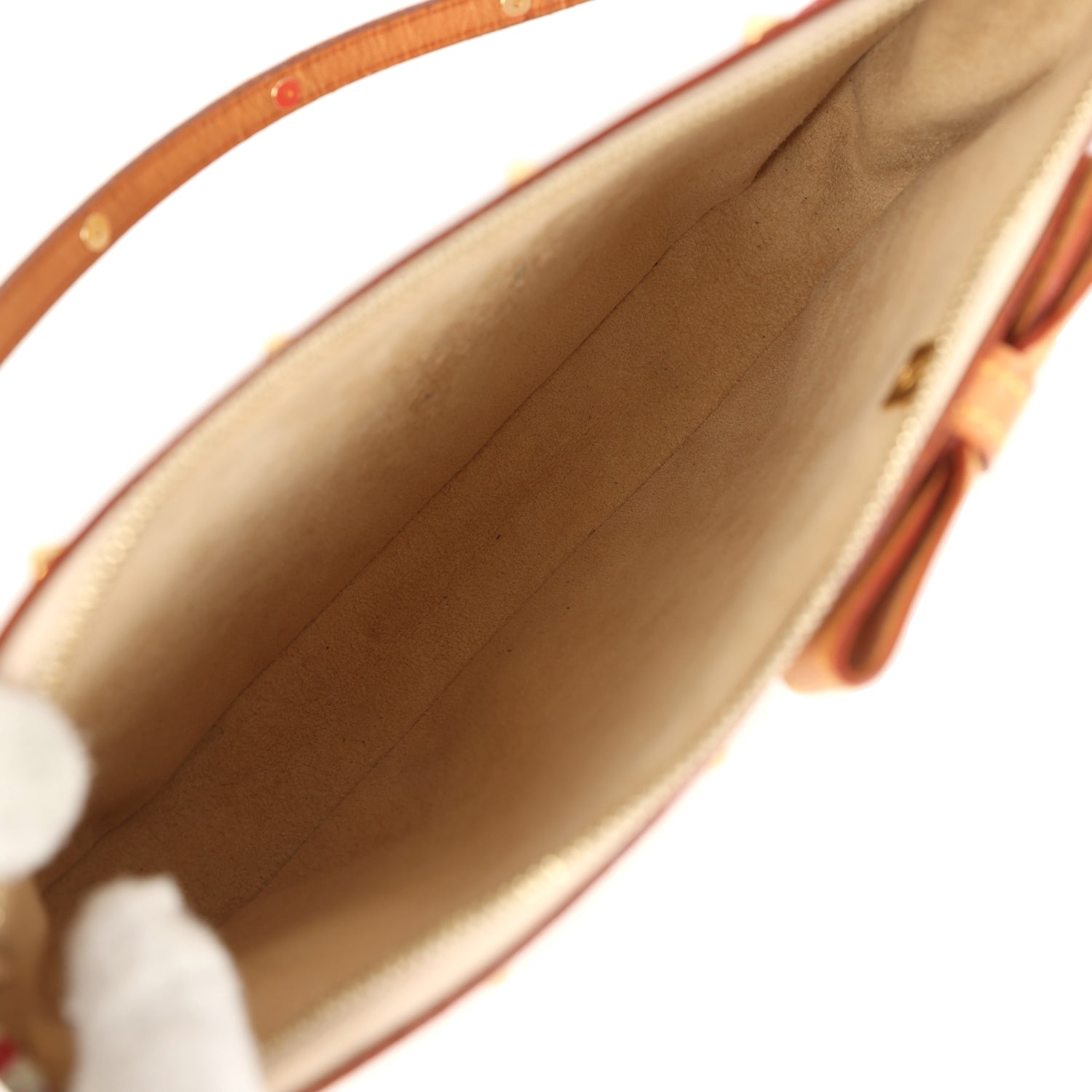 Vintage Louis Vuitton x Takashi Murakami Red and Creme Monogram Cherry Blossom Pochette Gold Hardware