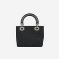 Christian Dior Vintage Mini Lady Dior Black Embroidered Beads Silver Hardware