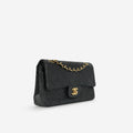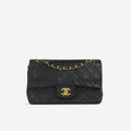 Crafted from Chanel's signature black lambskin leather, this vintage gem is an absolute must-have for any woman with a love for luxury. Featuring the brand's infamous interwoven chain / leather shoulder strap, double flap, and gold tone hardware, this classic bag is the perfect balance between fashion and function. Practical as well as stylish, this bag is a timeless piece that will remain in your wardrobe forever. The ideal accessory to take you from day to night, there's not much this bag won't go with.