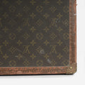 A rare piece from Louis Vuitton, this vintage trunk is an absolute must have for any lover of LV or vintage timepieces in general. Though its perfect for travel, we love this trunk as an interior decoration piece. Rich in history, genuine travel stickers from previous owners are still stamped onto the trunk. With its signature monogram printed embossed throughout, rustic brass hardware and vintage brown LV logo trimming, this piece truly is special. Always sleek, always chic - this trunk will never go out of style.