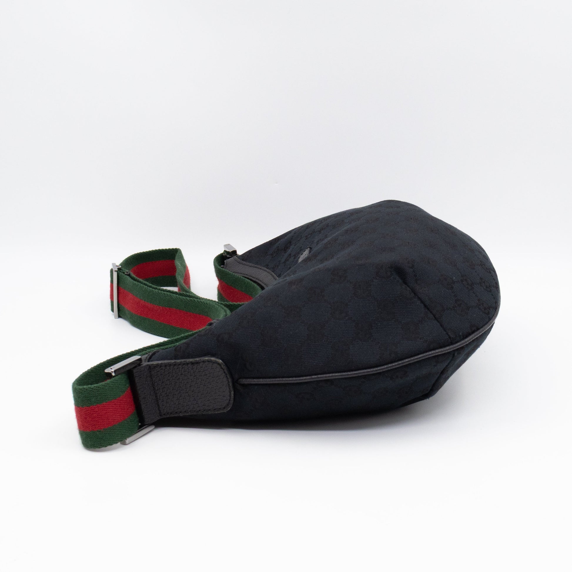 Gucci Vintage Web Hobo Messenger Bag Black GG Canvas