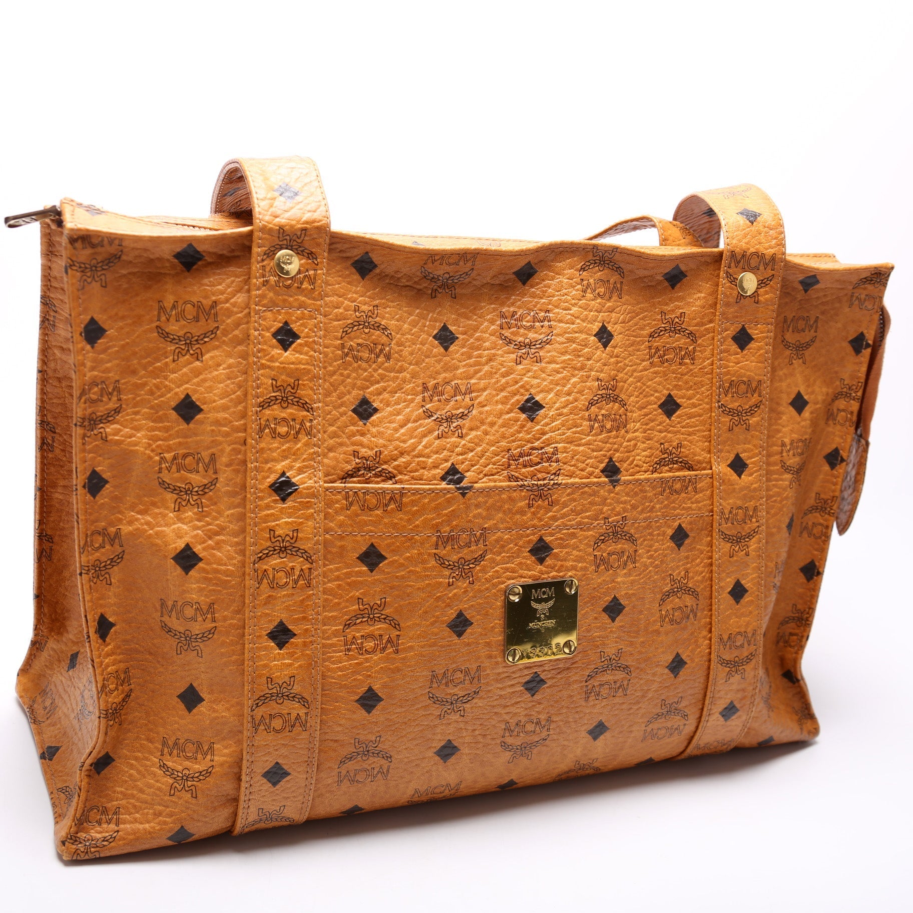 This MCM Zip Toteis eye catching bag. The exterior is in the classic MCM leather.
