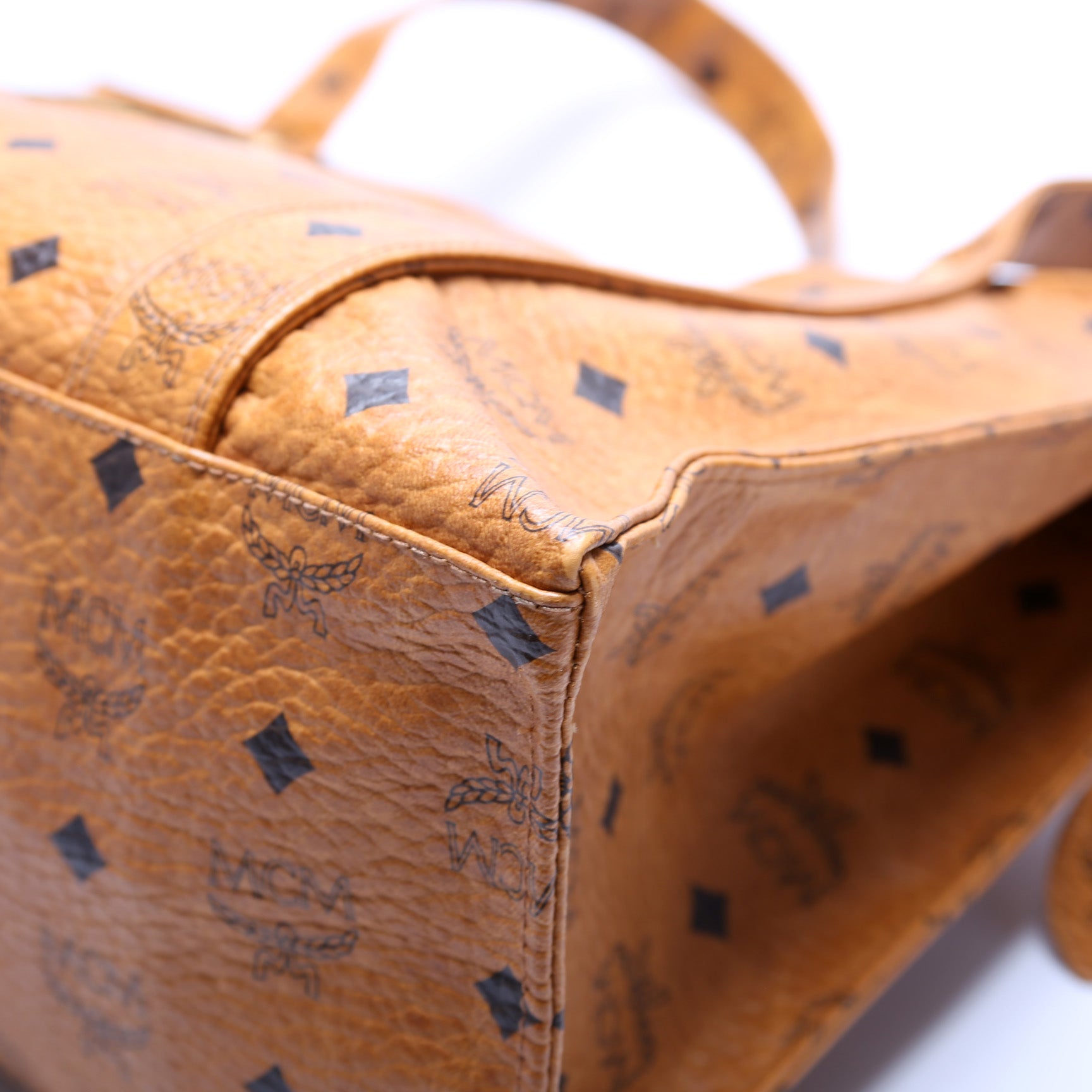Hardware: The zipper operates properly. The MCM logo plate shows minor scratches.