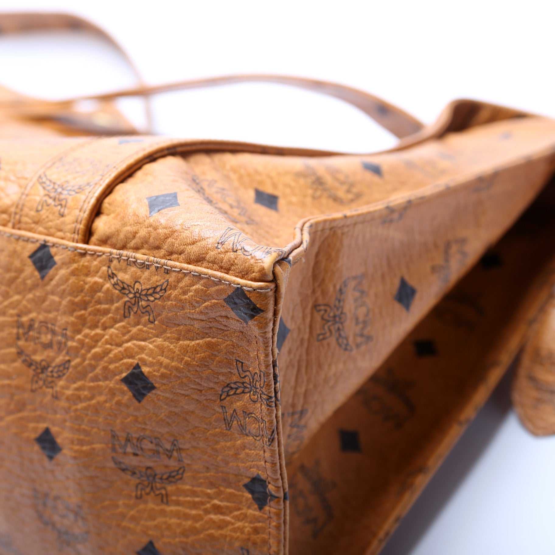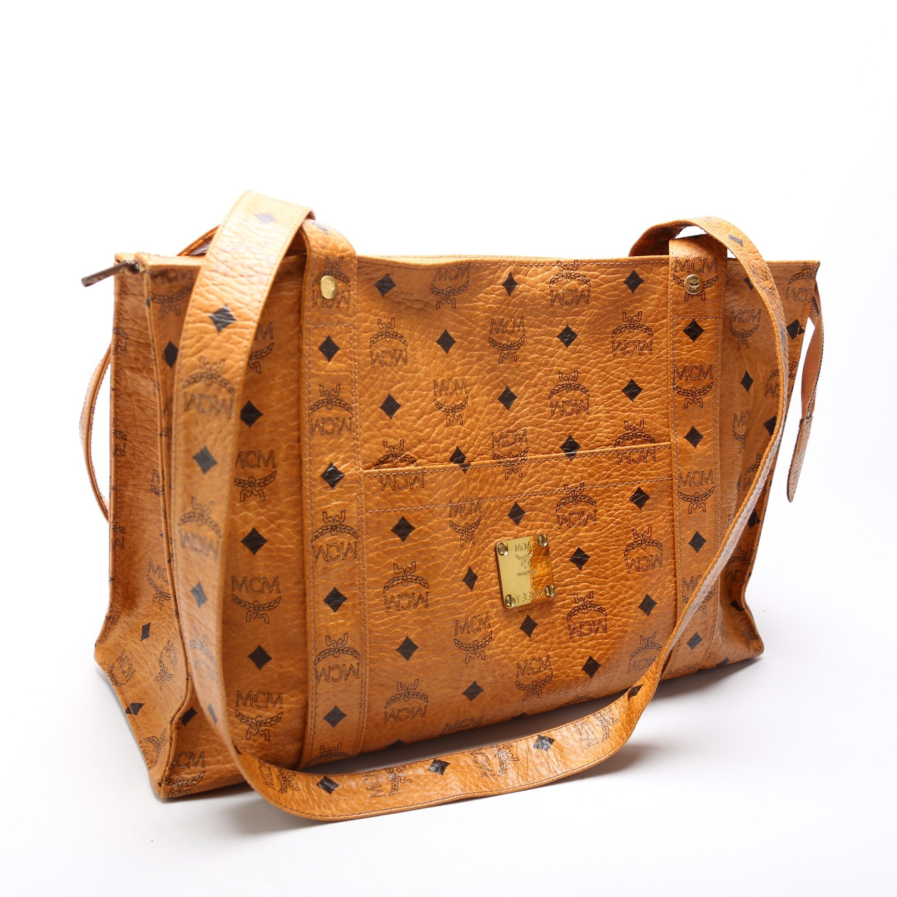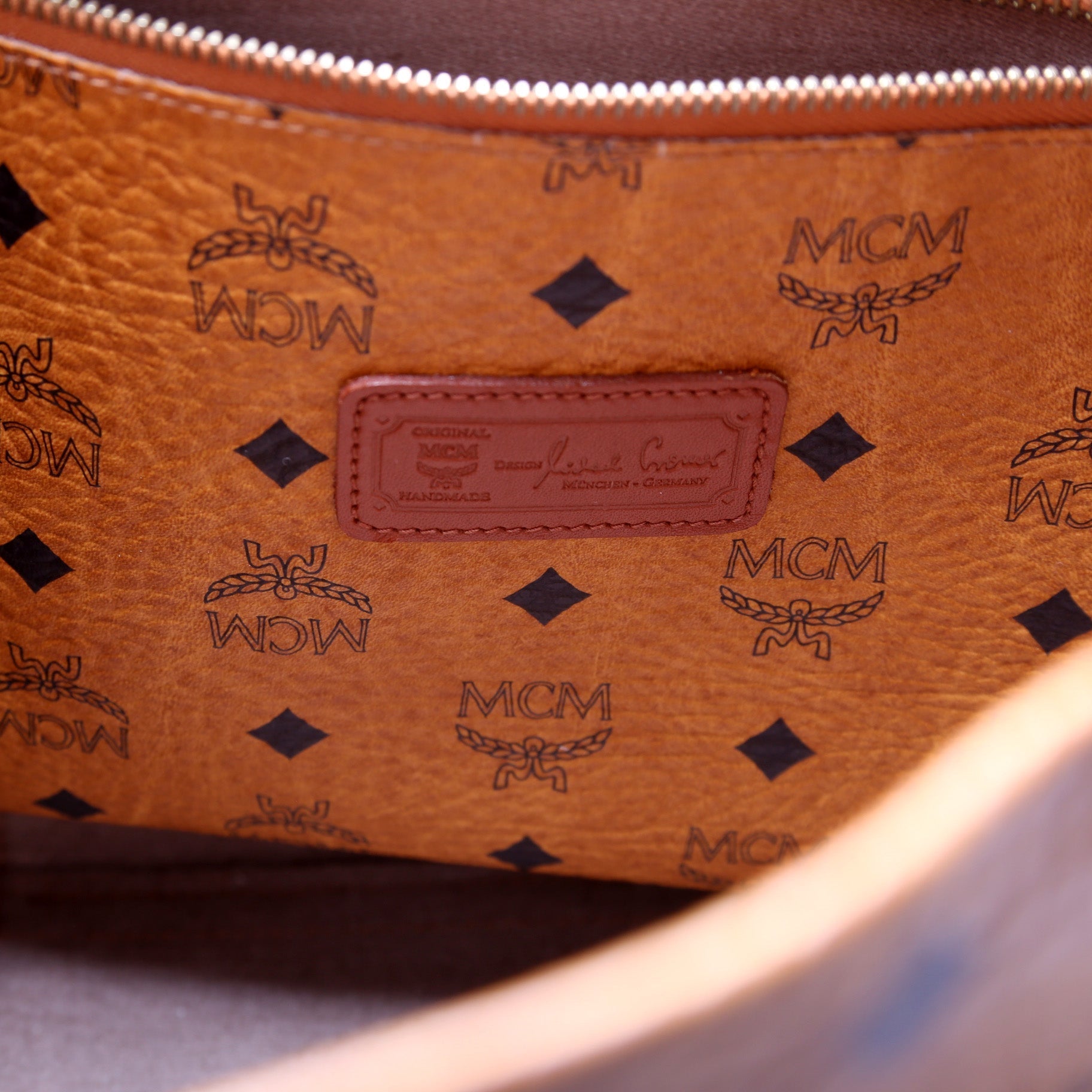 This MCM Vintage Zip Top Toteis eye catching bag. The exterior is in the classic MCM leather.