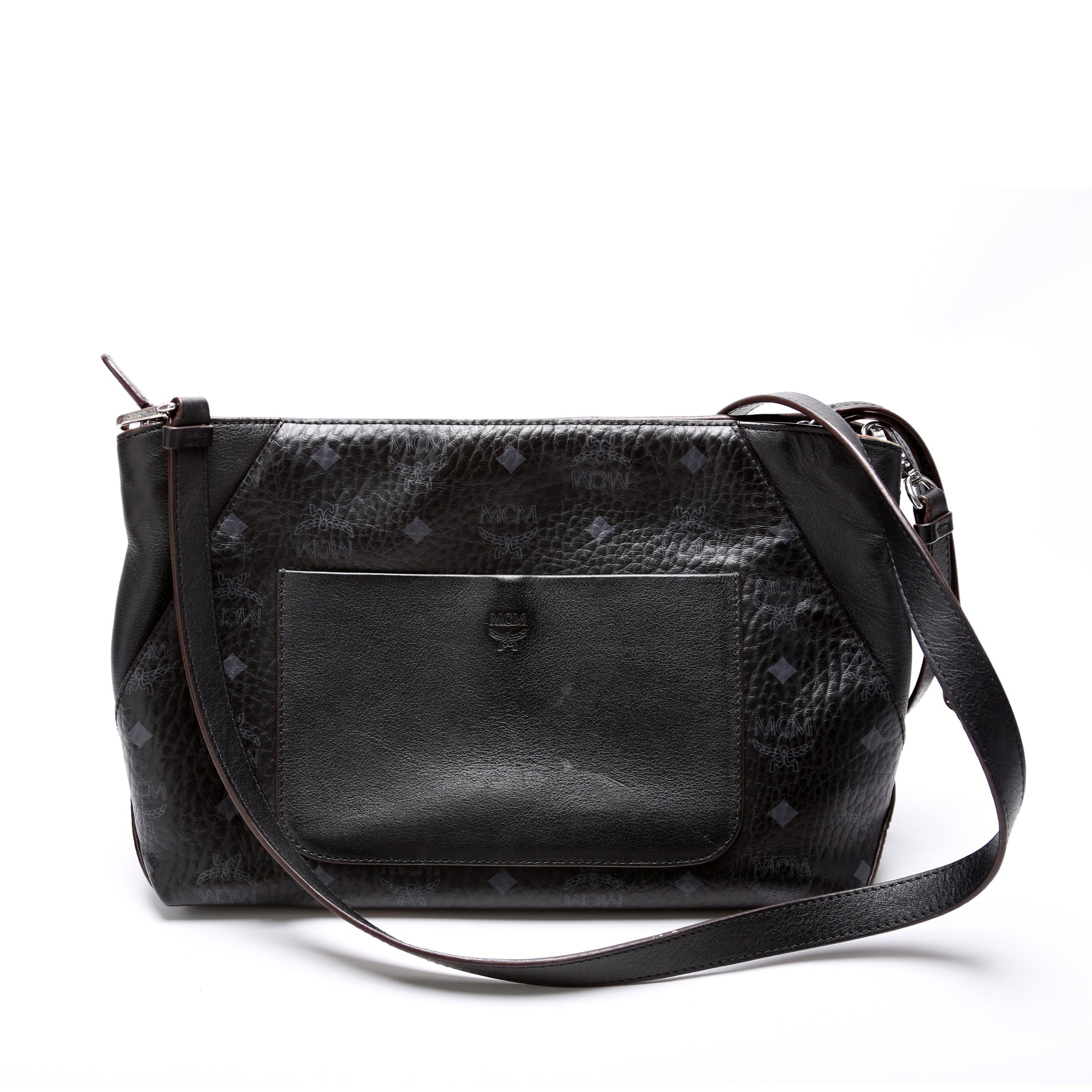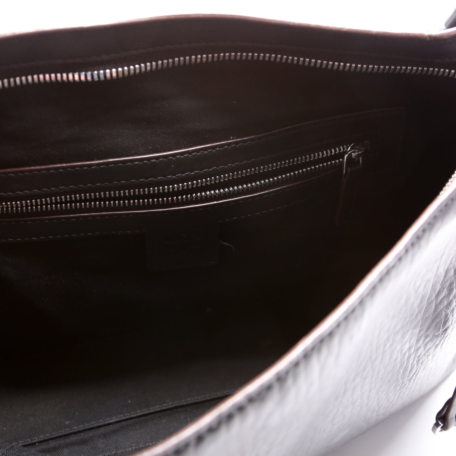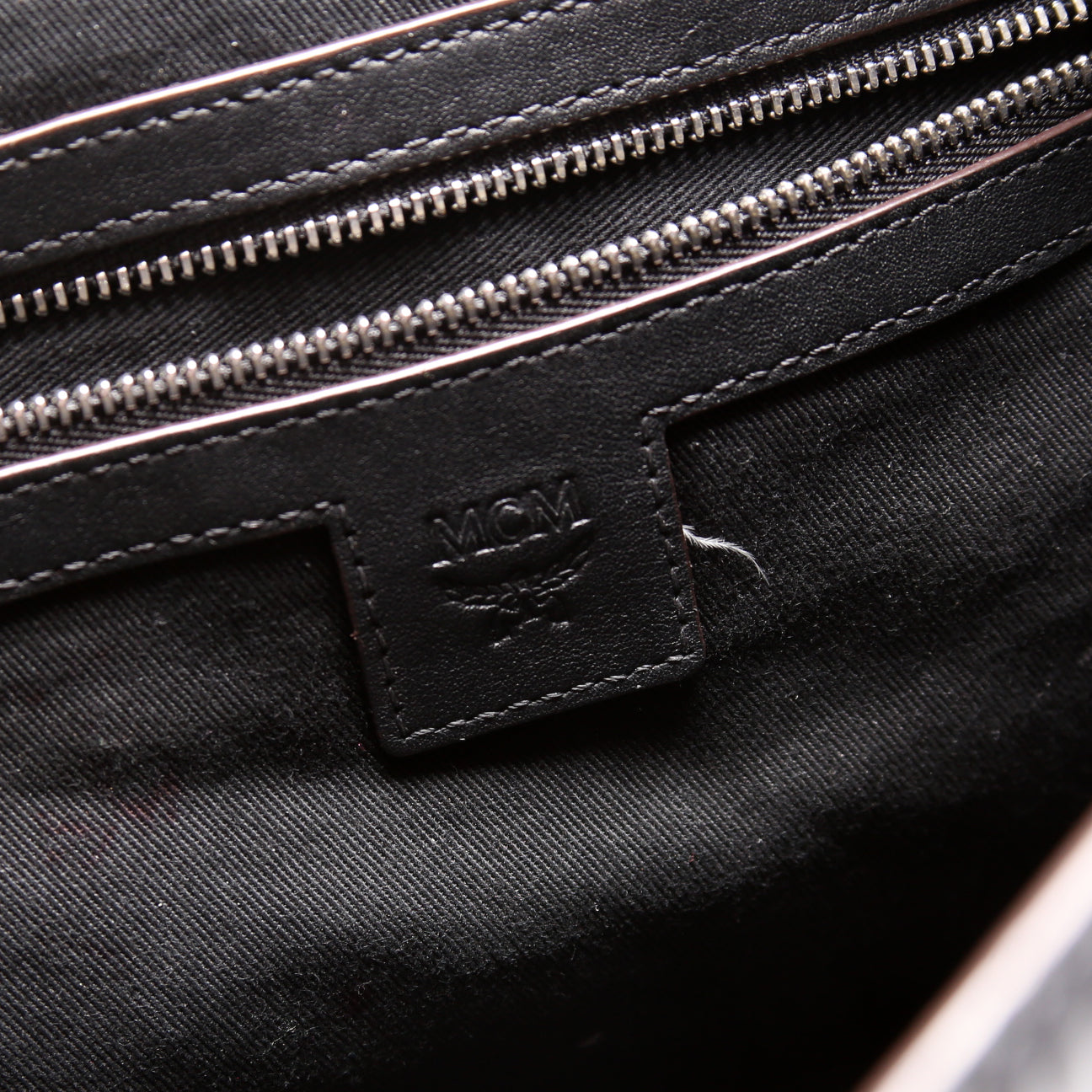 Exterior: The exterior canvas is free from wear. The exterior features one open pocket. The leather on the pocket has minor scuffs. The glazing along the opening of the bag is cracked.