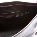 Interior: The interior has minor discoloration. It features one open pocket and one zip closure pocket.