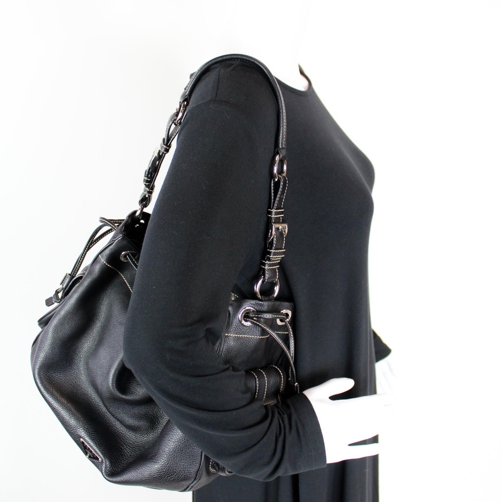 This Prada Vitello Daino Drawstring Pocket Hobo is d 100% .