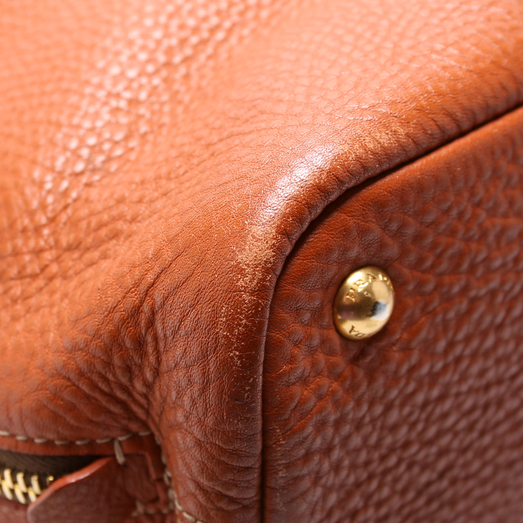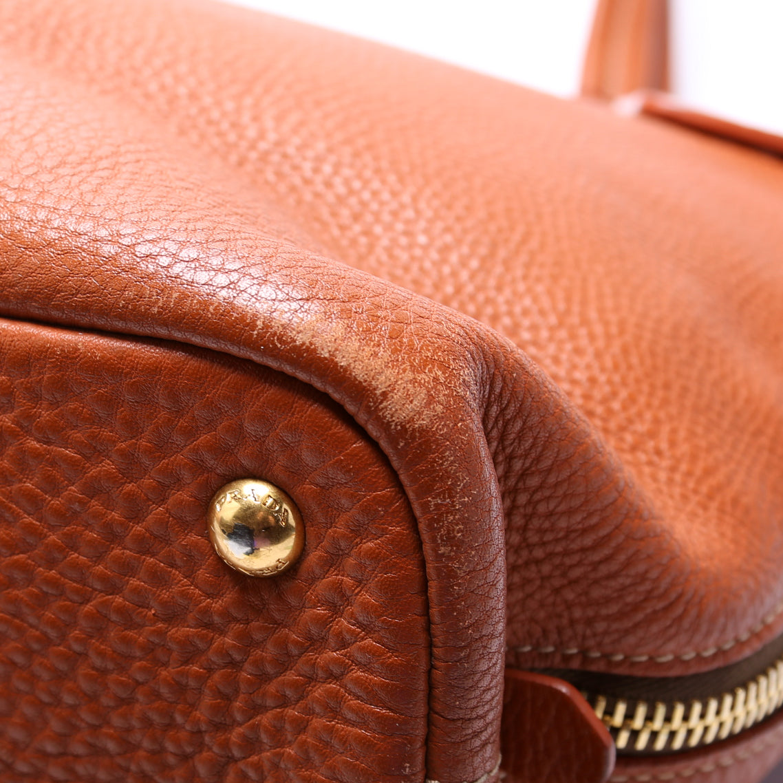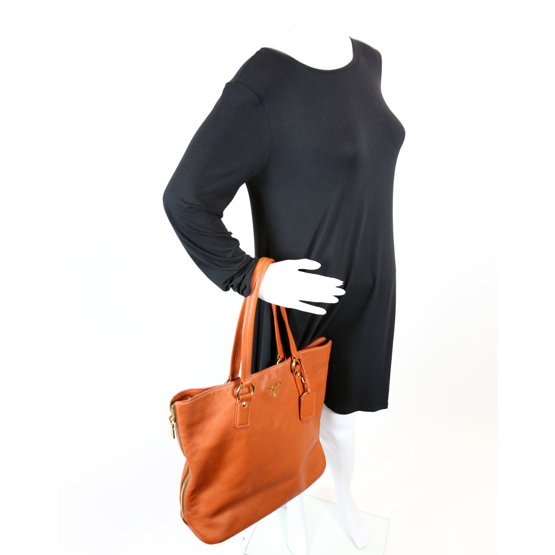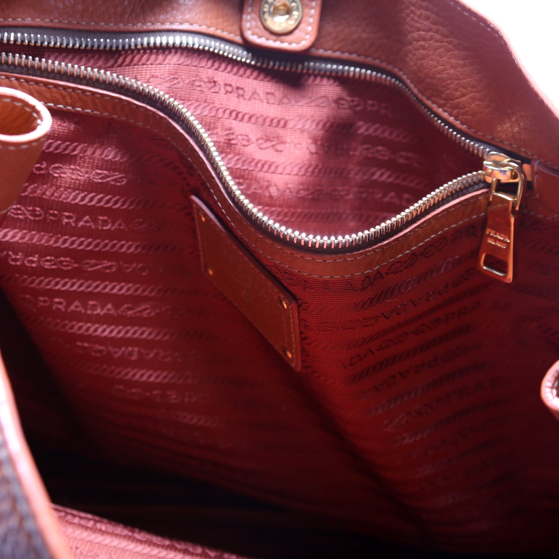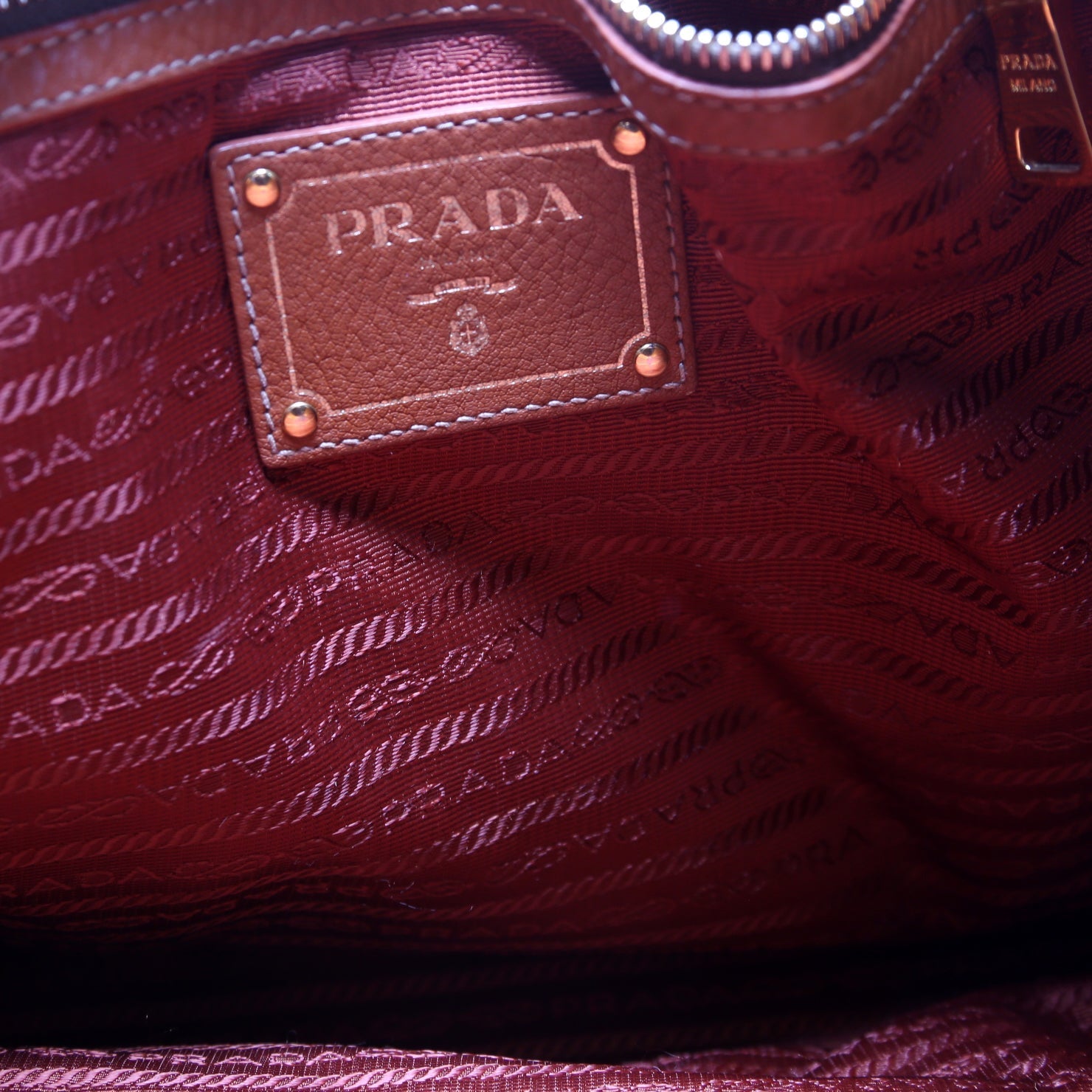 This Prada Vitello Daino Phenix Toteis eye catching bag. The exterior is in the classic pebbled leather.