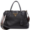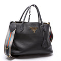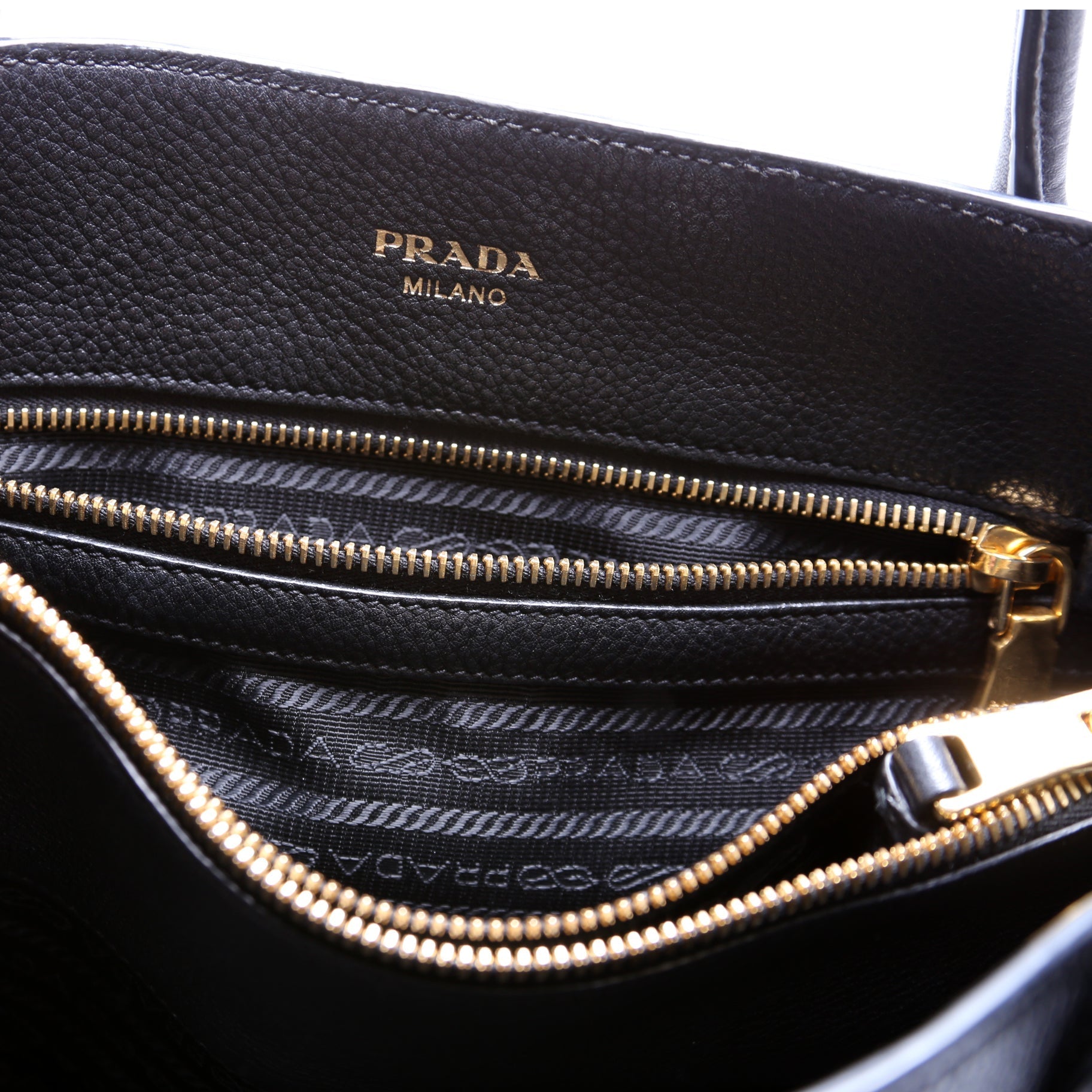 This Prada Vitello Daino Shopperis eye catching bag. The exterior is in the classic pebbled leather.