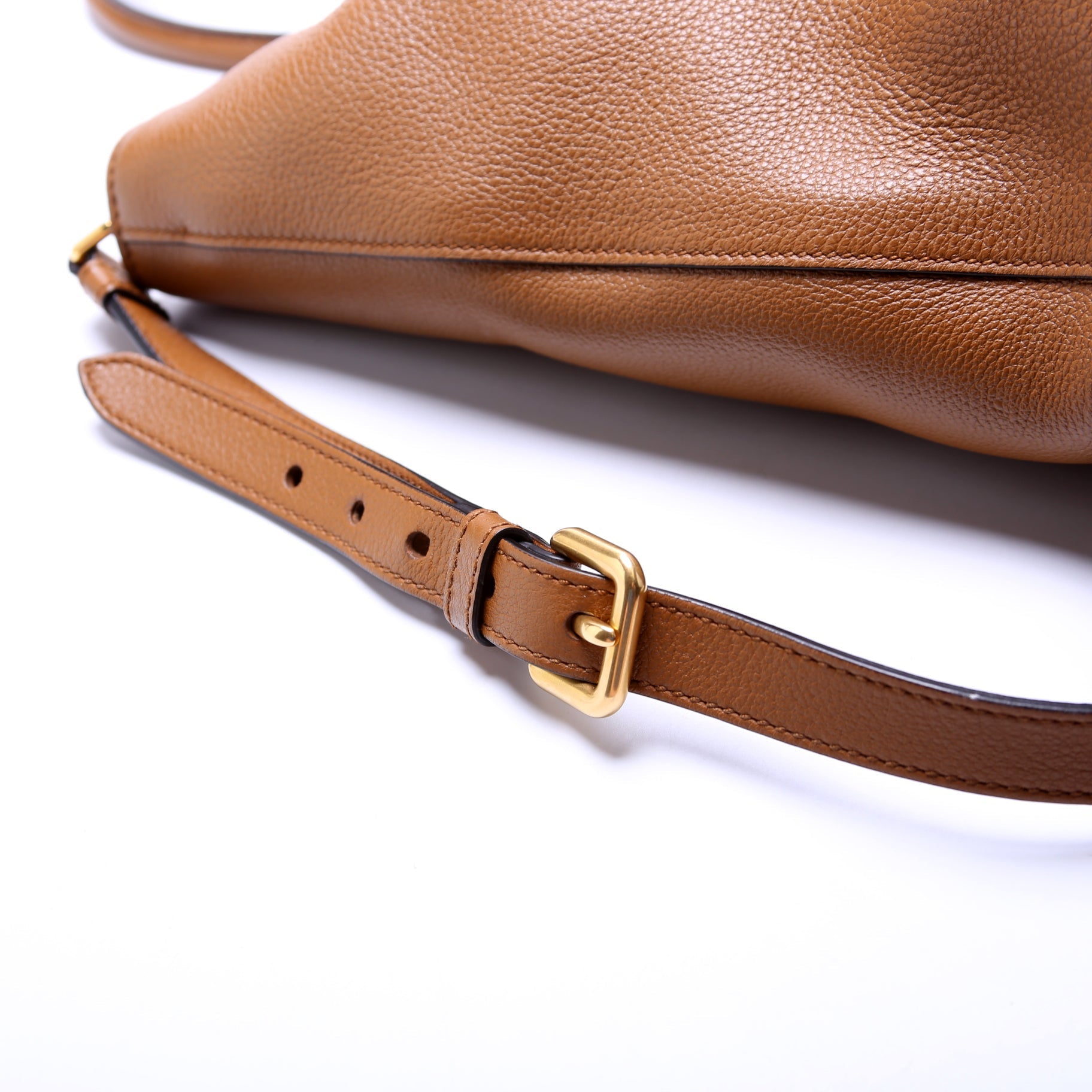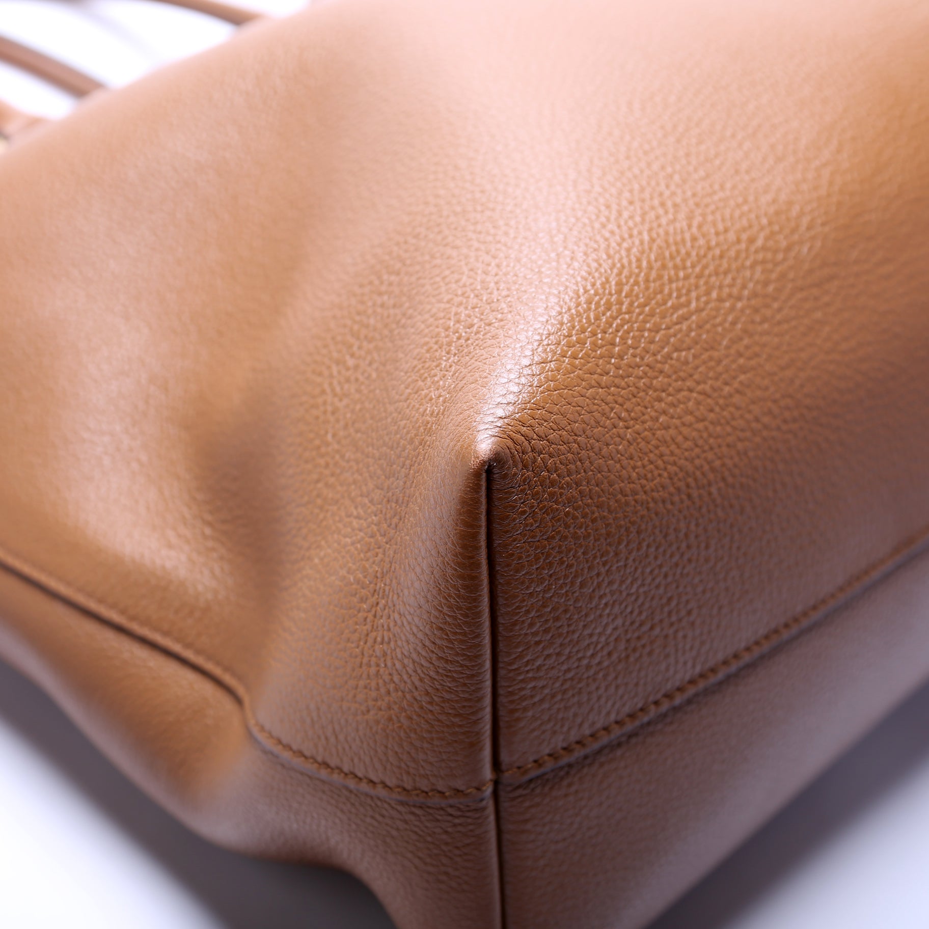 Exterior: The exterior leather is free from any rips or cracks. The corners show minor rubbing.