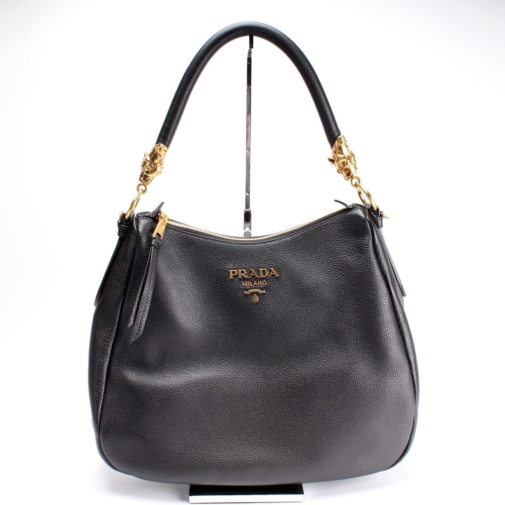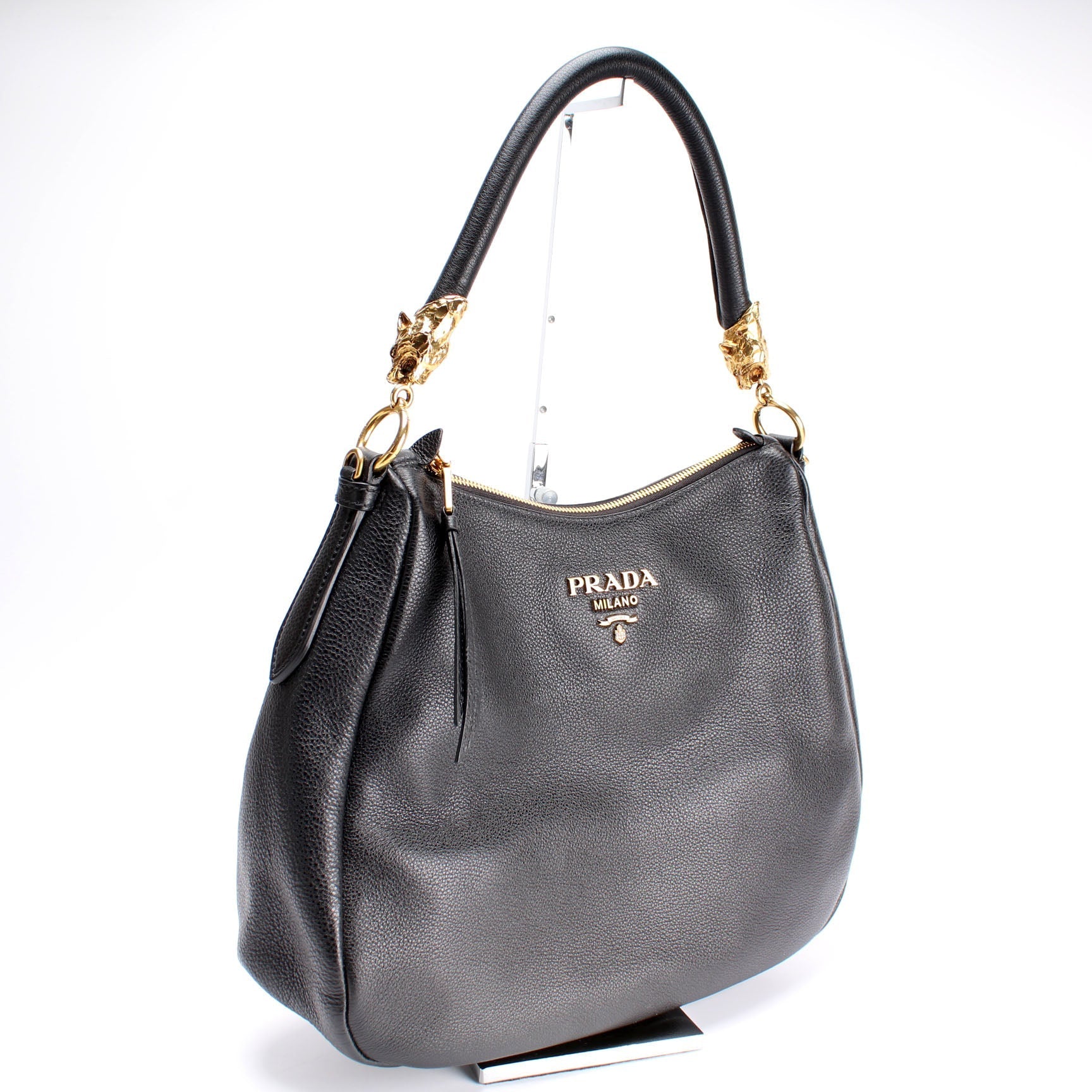 This Prada Vitello Phenix Tiger Hobois eye catching bag.