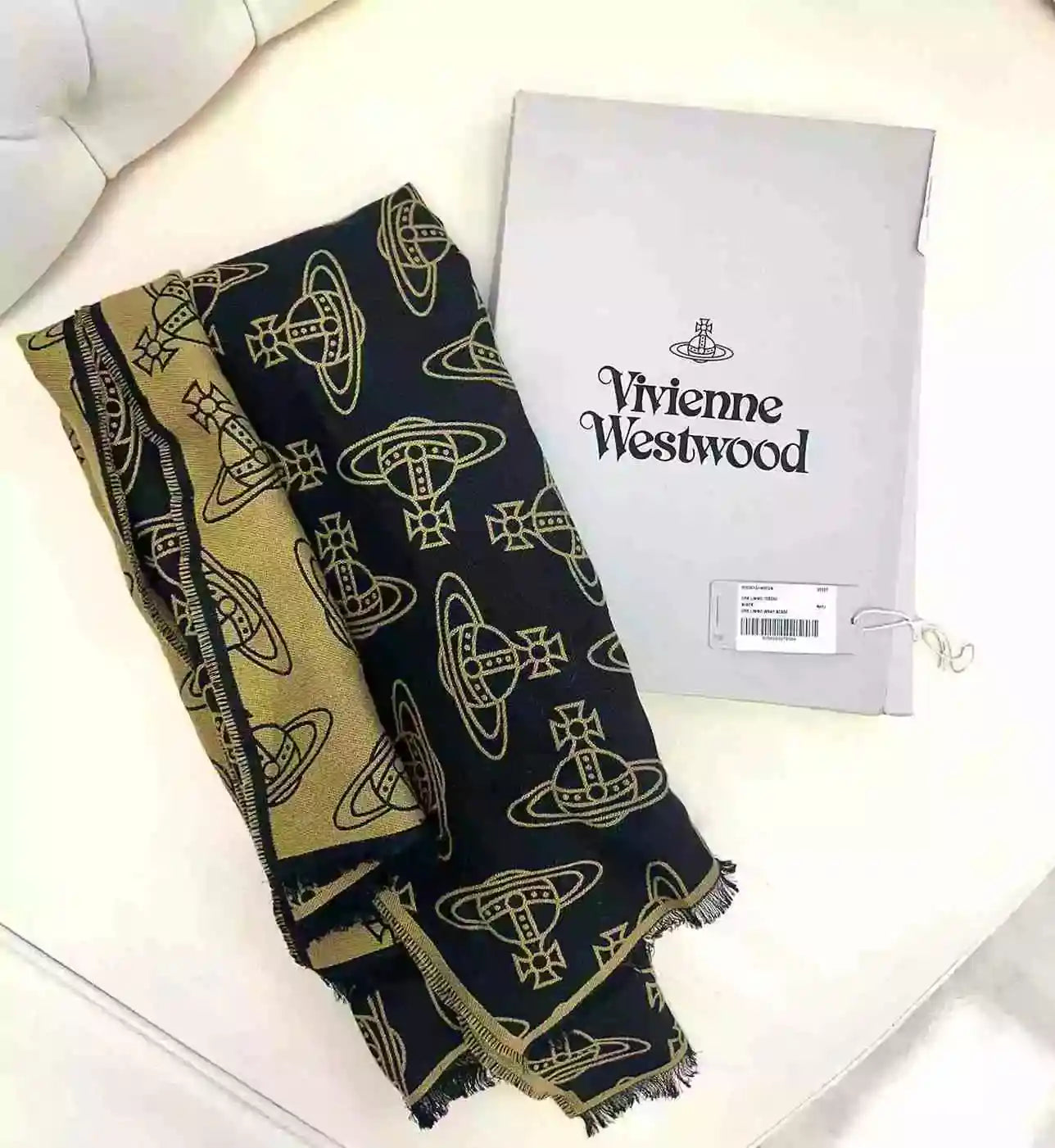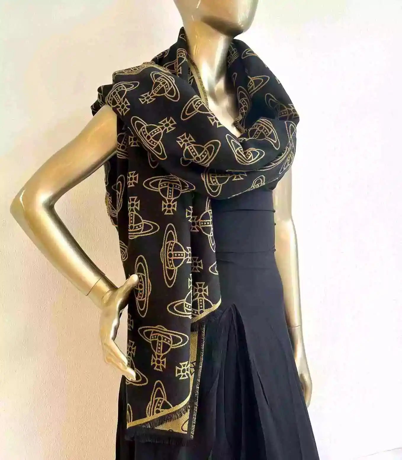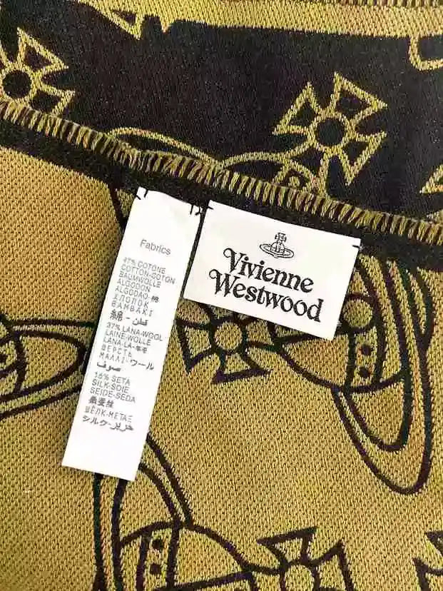 Vivienne Westwood Orb Motif Black Khaki Wool Blend Scarf