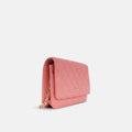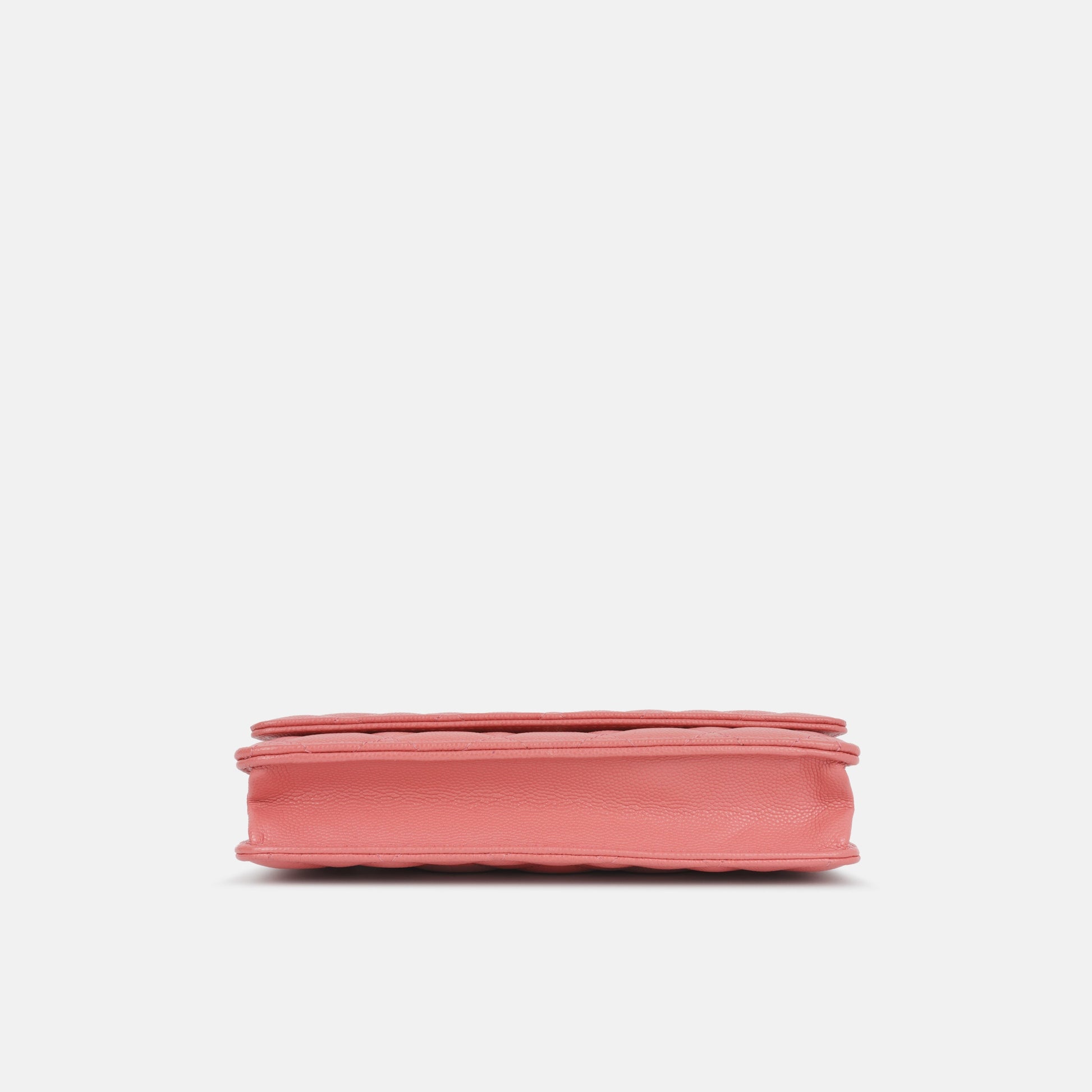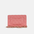 - Coral pink quilted caviar leather