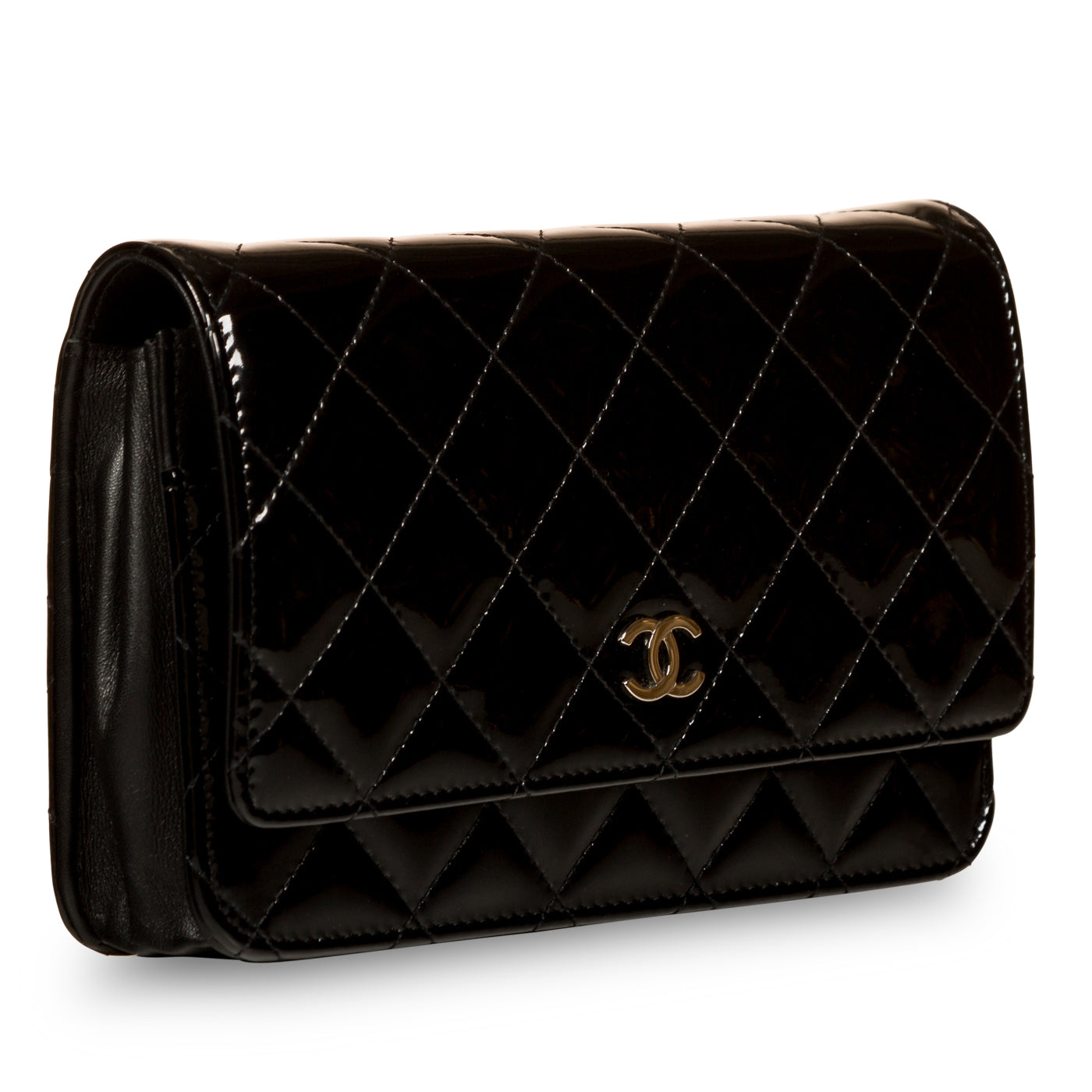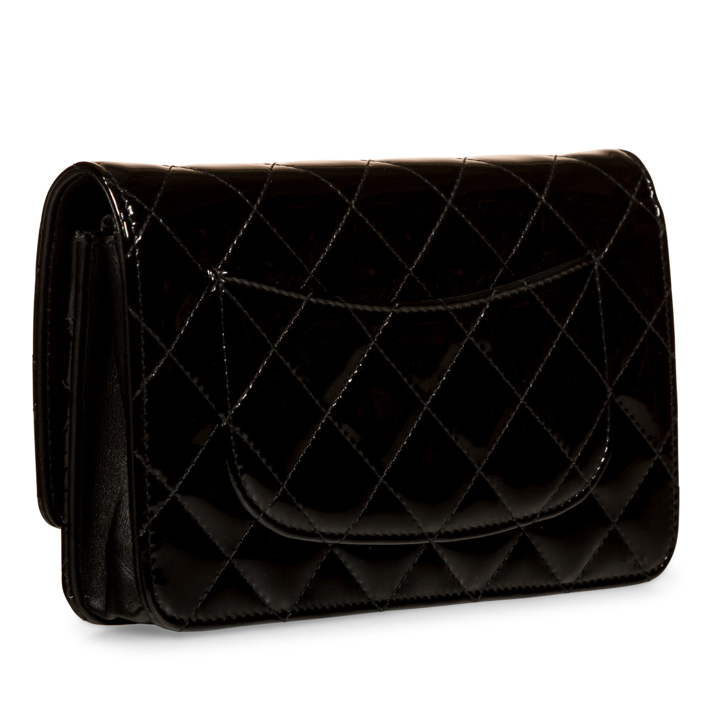 The Chanel Wallet On Chain is more or less the smaller version of the iconic Classic Flap. Sleek, stylish and sophisticated the WOC is a timeless piece that you will have forever. Carefully crafted from shiny, black patent leather with silver-tone hardware, this particular WOC is not one you see often. With a larger CC logo, this bag is a prime example of an "understated statement." Perfect for day-to-night usage, the Chanel WOC is the ideal accessory to hold all your small essentials. An easy, efficient bag you don't have to think about, this stunning piece is the perfect compliment anything in your wardrobe. A true must-have for any woman with a love for luxury and a chic sense of style, this little gem is a well-worthy addition to any handbag collection.