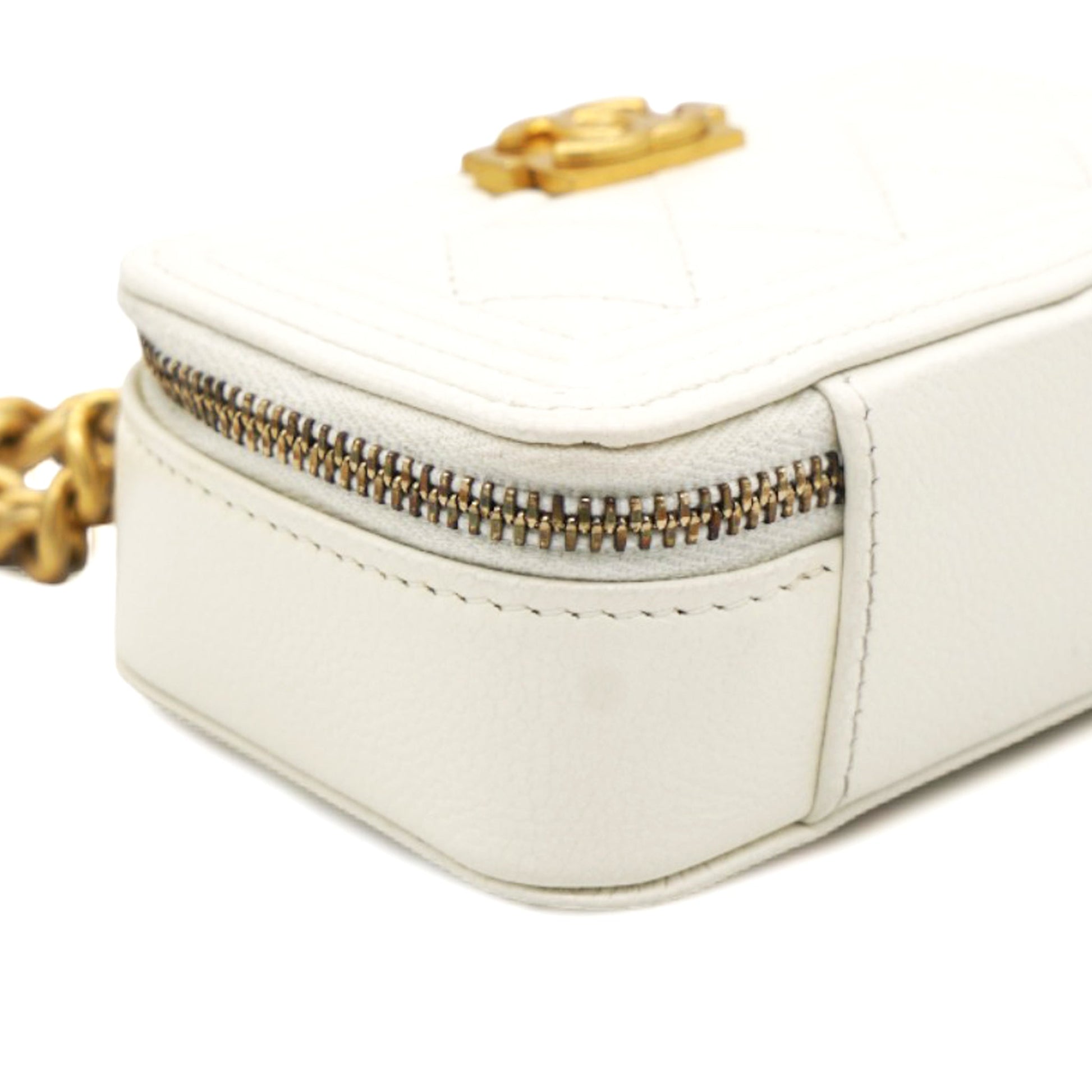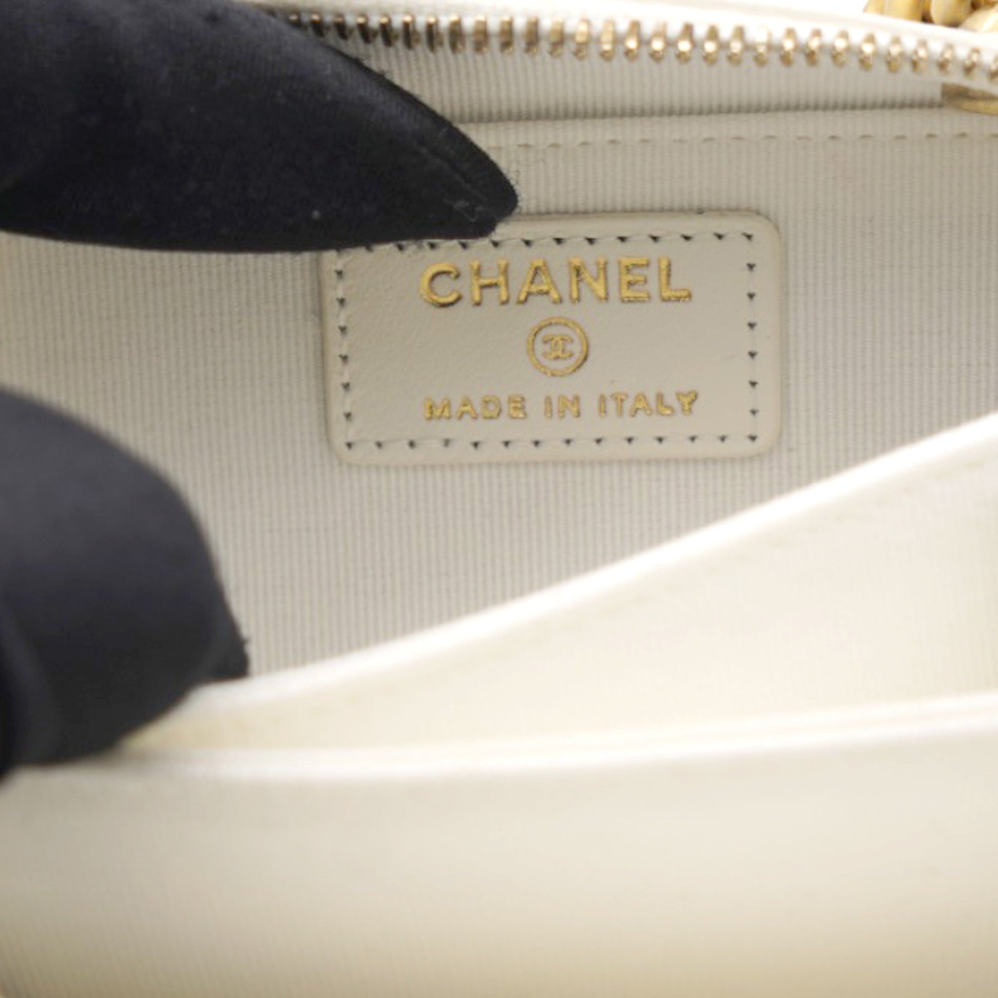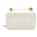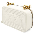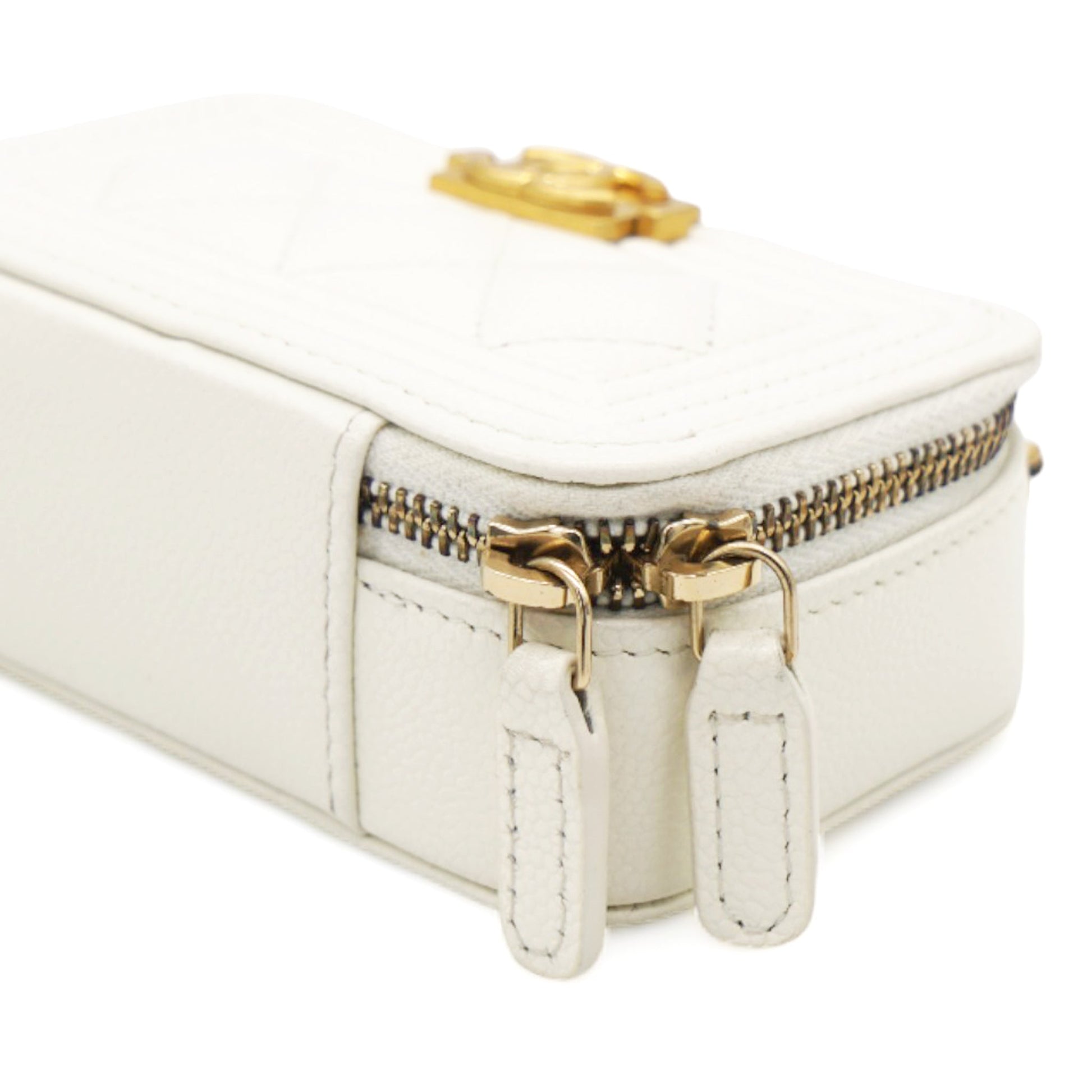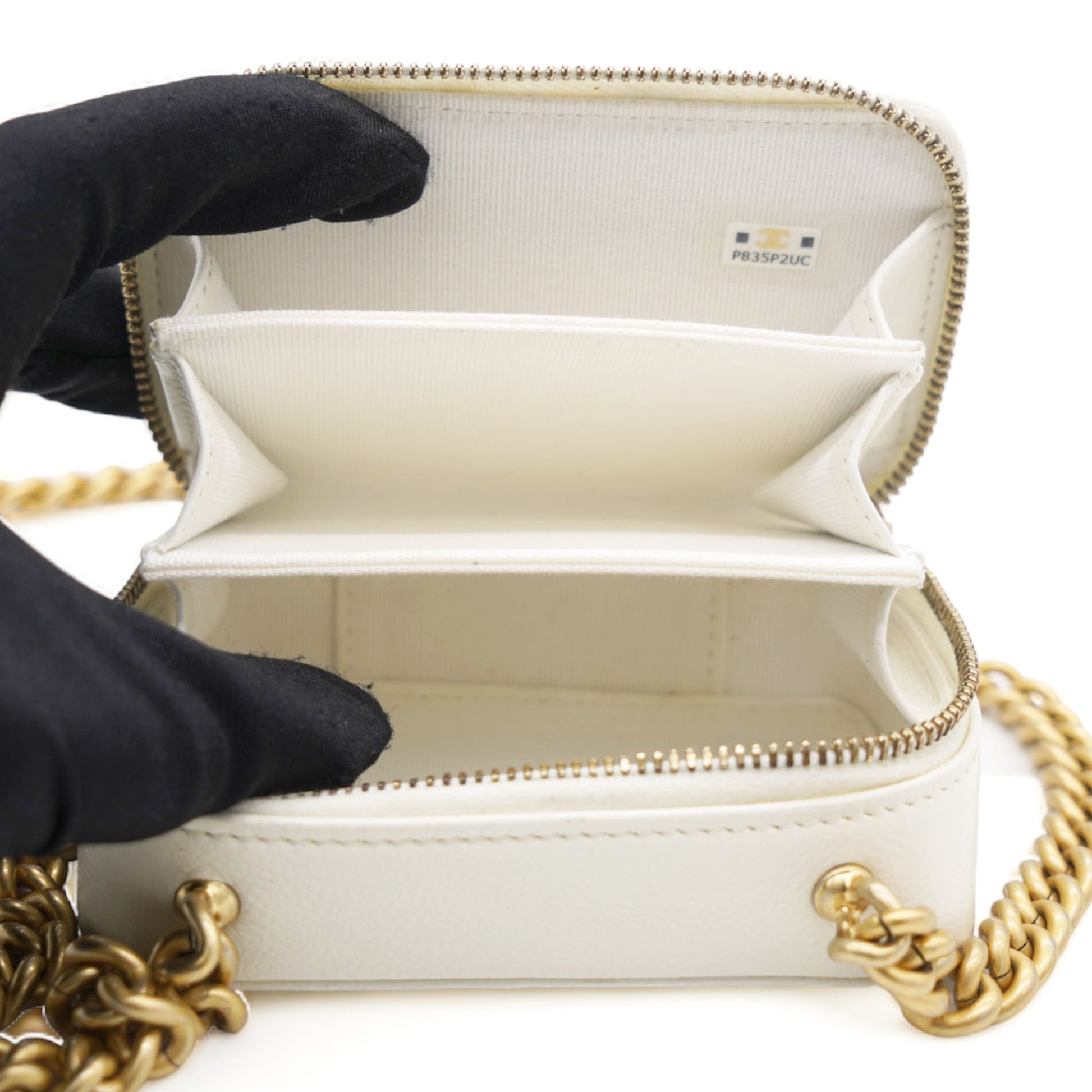 | This cardholder from Chanel is absolutely gorgeous to look at! Crafted from caviar leather in white, it features the signature quilts, the Boy CC logo on the front zip, and a brushed gold chain link for you to parade it in style. Organize your essentials in style with this beautiful creation. | Material: Leather Lining: Textile Hardware: Gold color finish metal Accessories: Serial Number: P835P2UC Production Year: 2022 | ![]() |