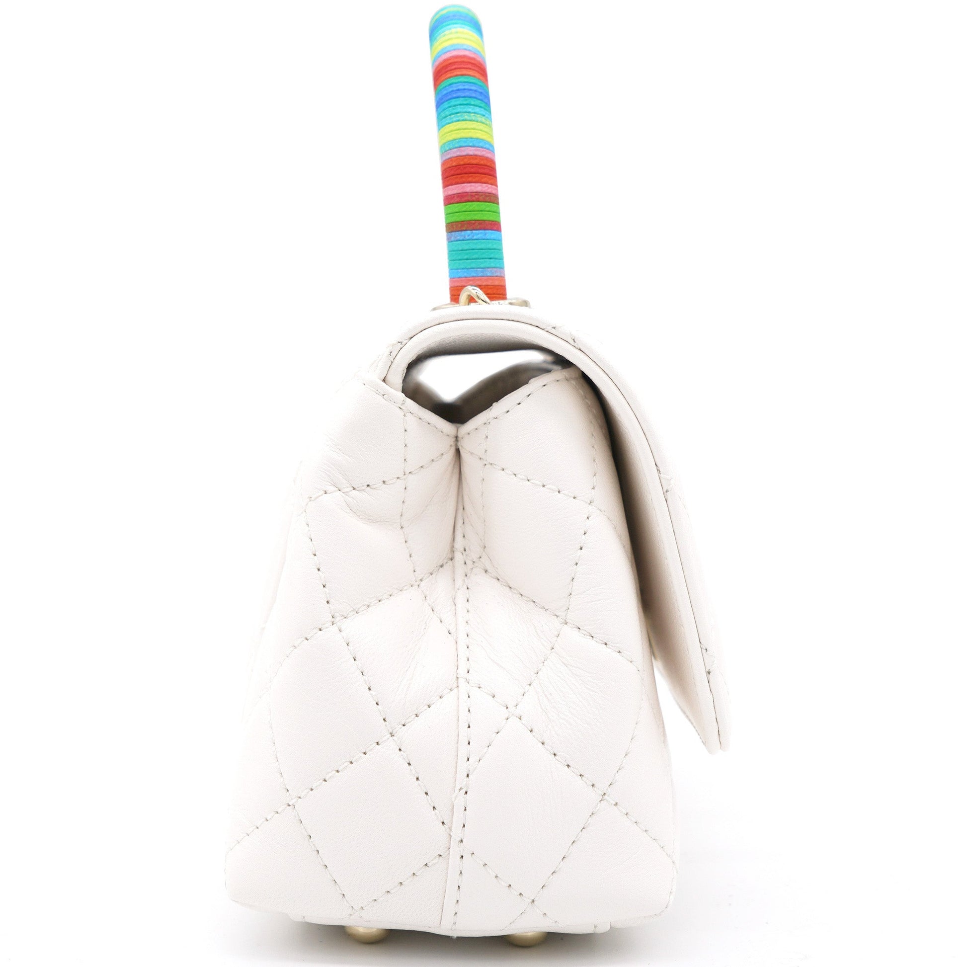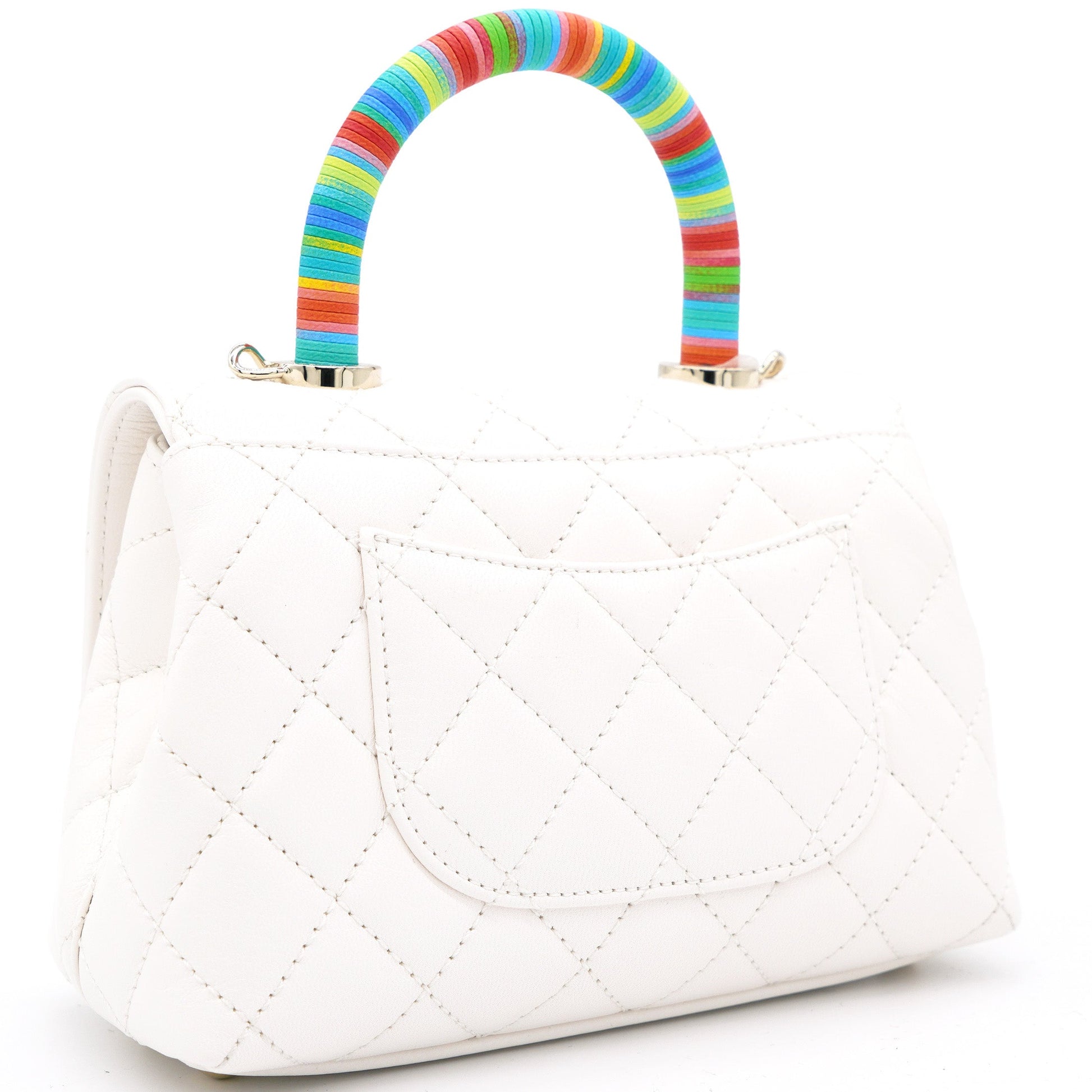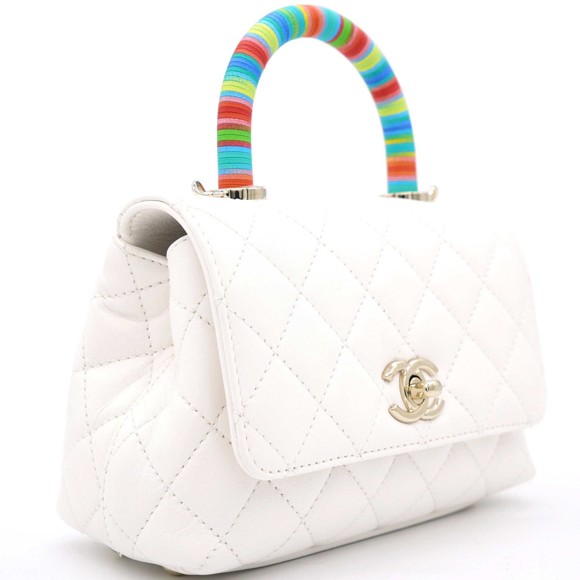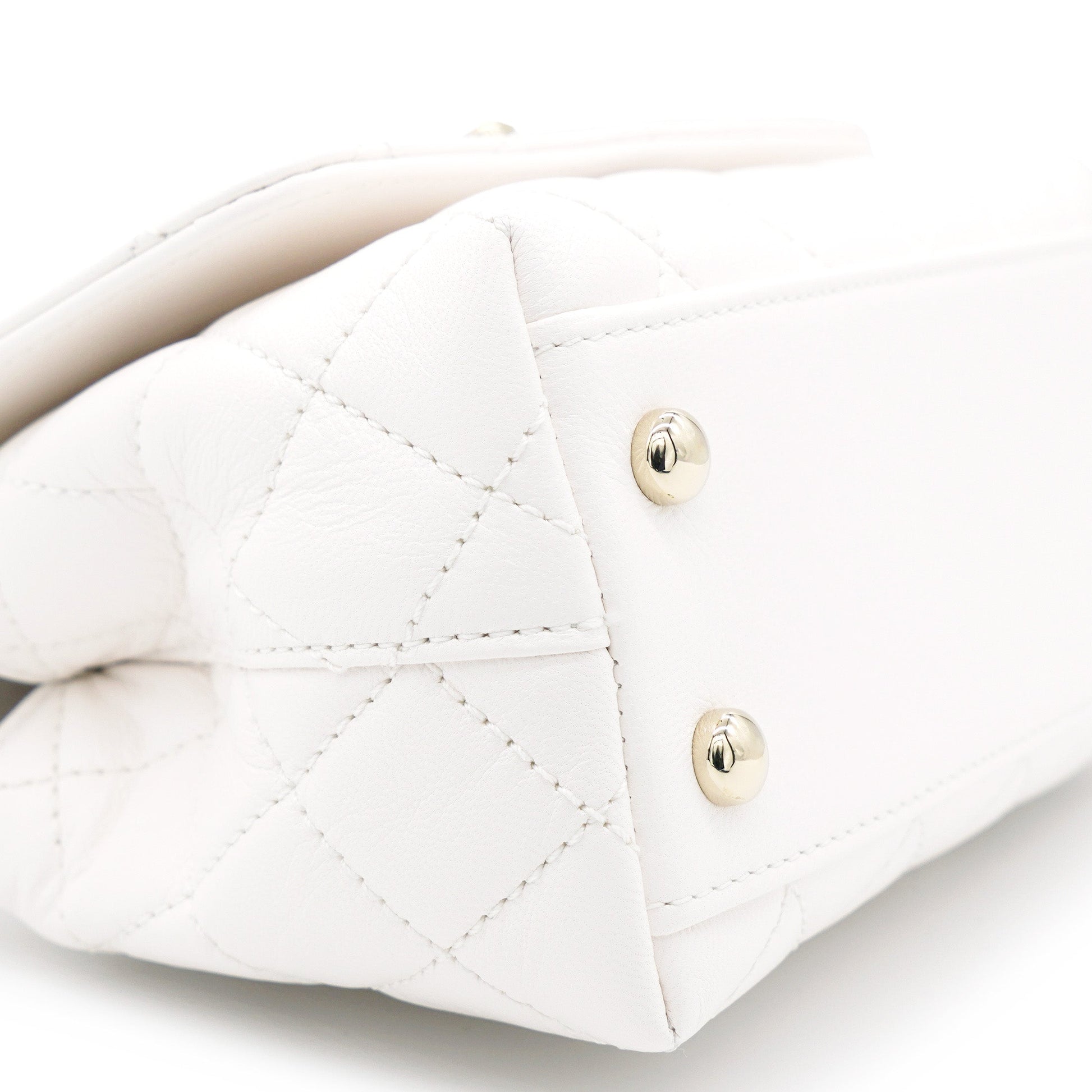 Chanel White Caviar Leather Mini Coco Top Handle Bag