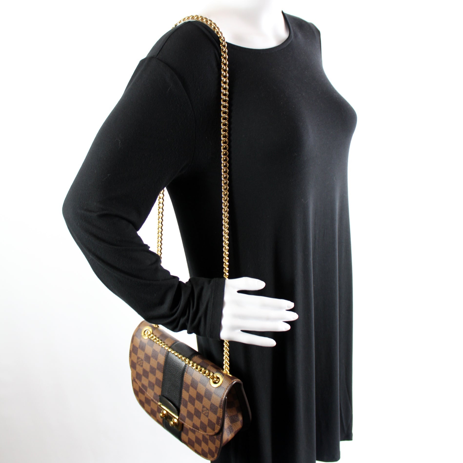 This Louis Vuitton Wight Bagis eye catching bag. The exterior is in the Damier Ebene coated canvas.