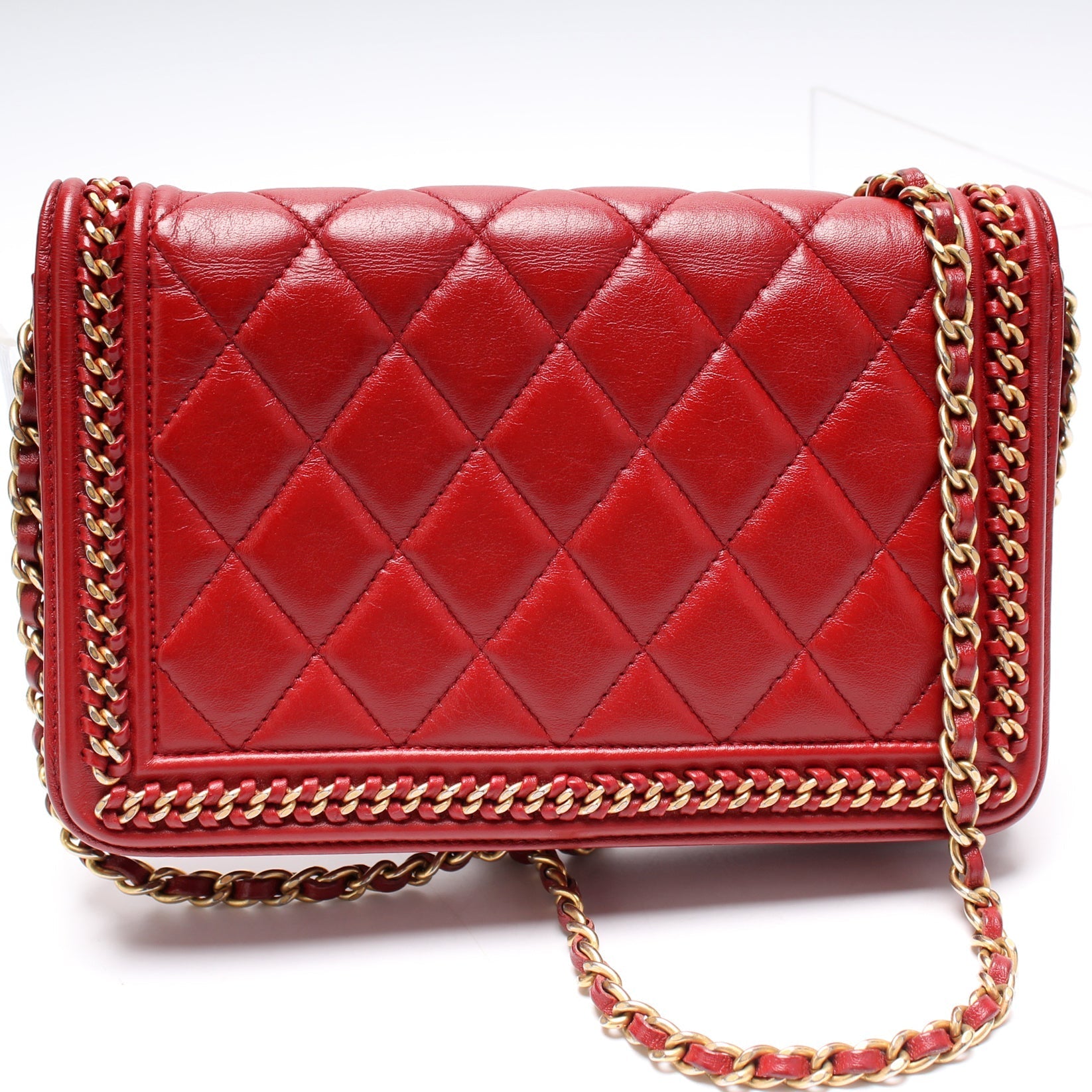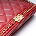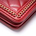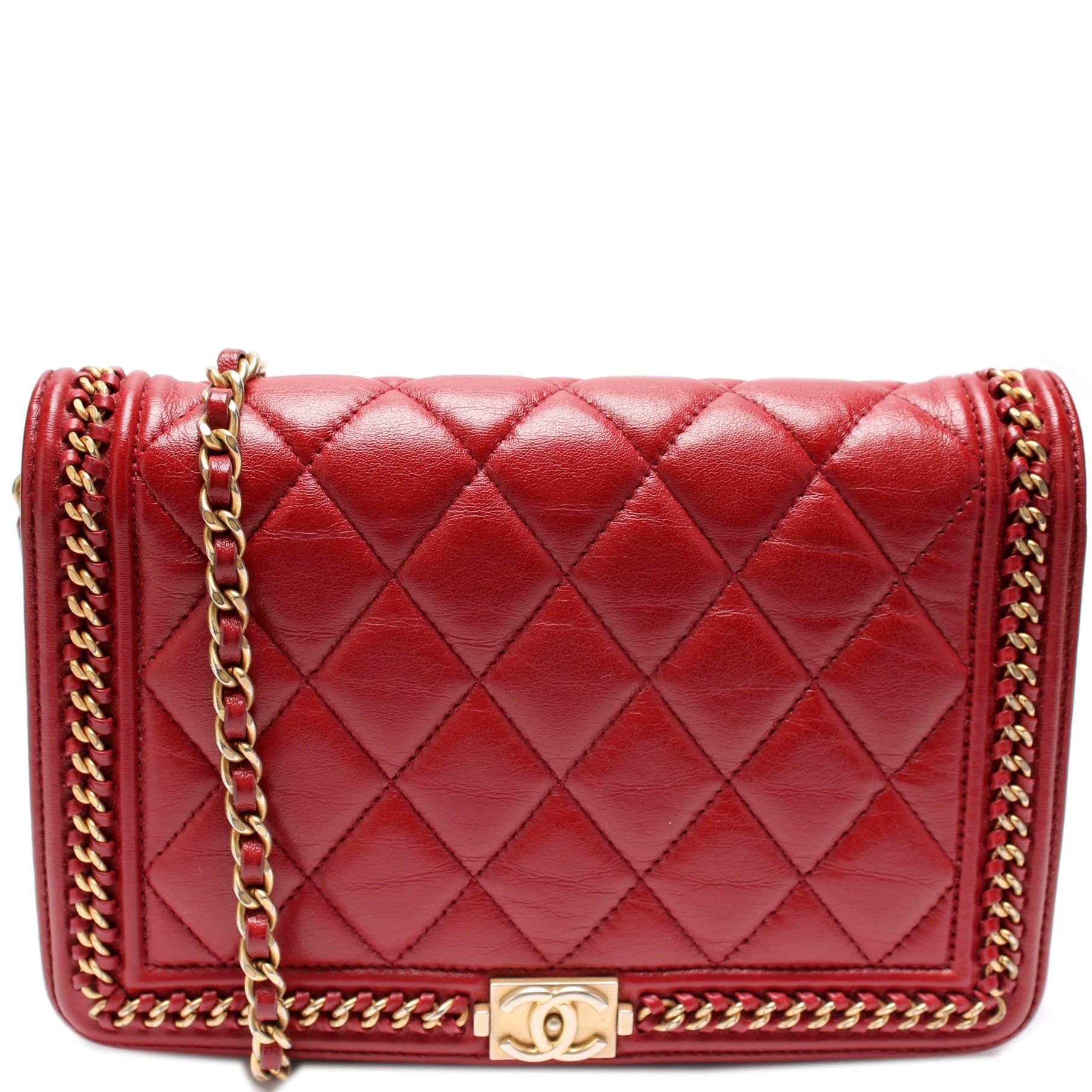 This Chanel Boy WOCis eye catching bag. The exterior is in the classic Quilted Calfskin.