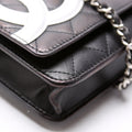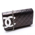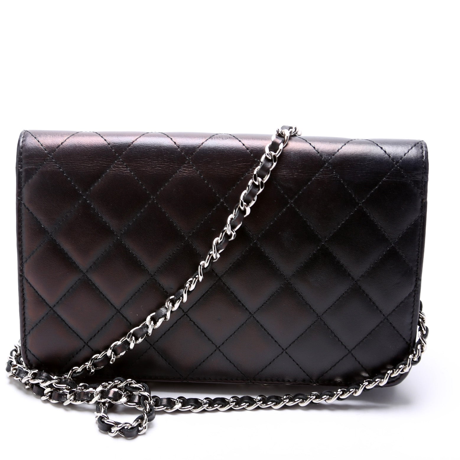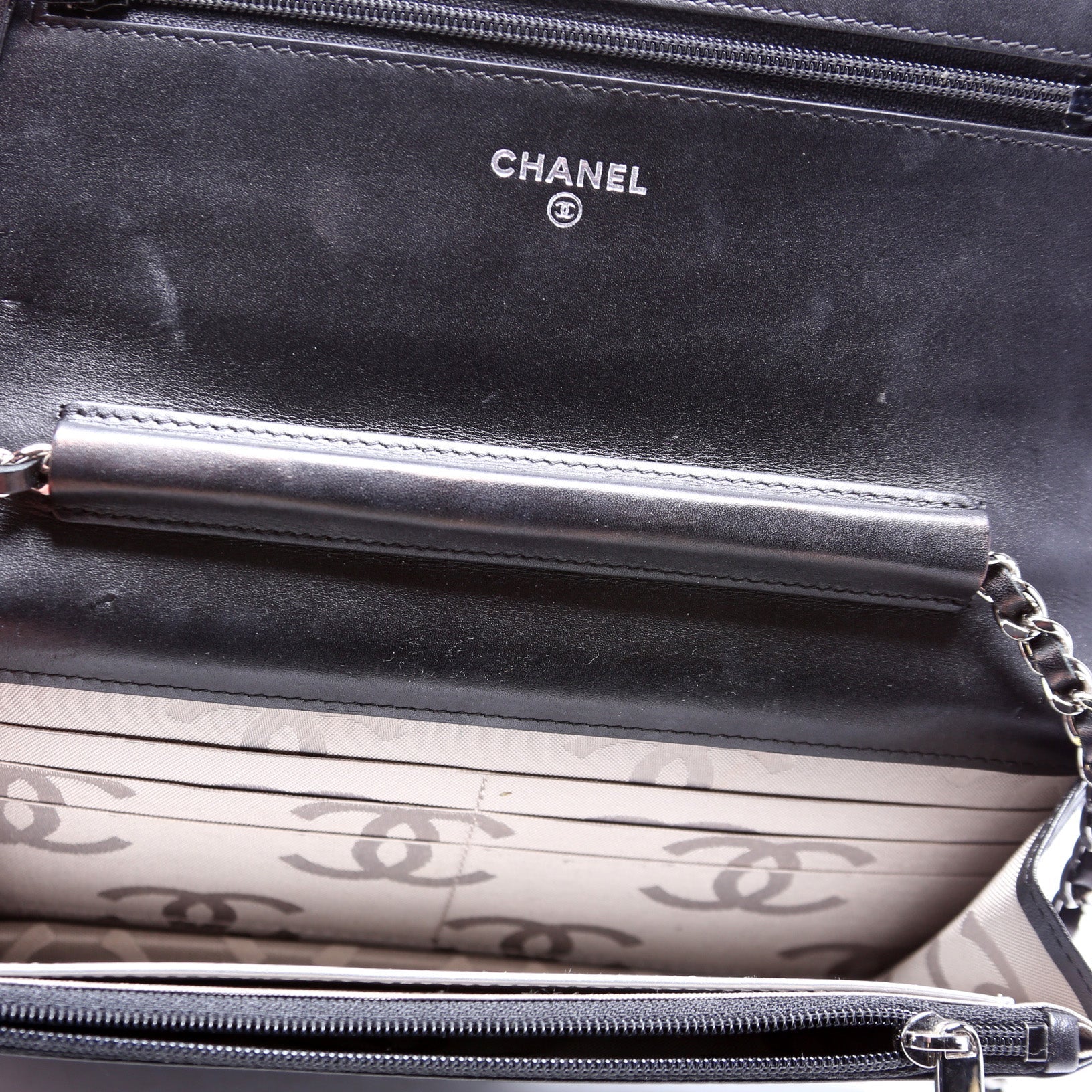 Interior: The interior is free from rips or tears. There are scuffs on the leather flap underneath. The interior features six card slots, two zip closure pockets, and two open pockets.
