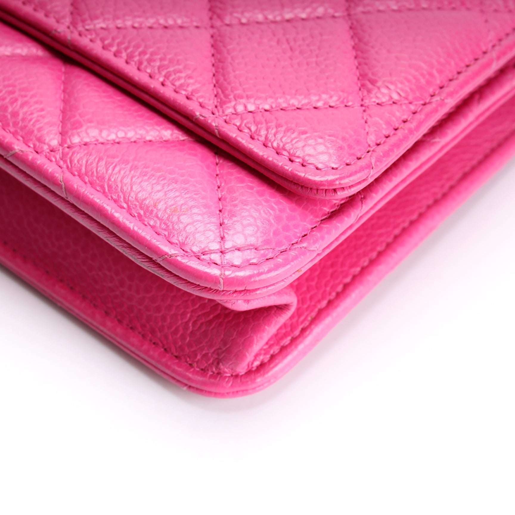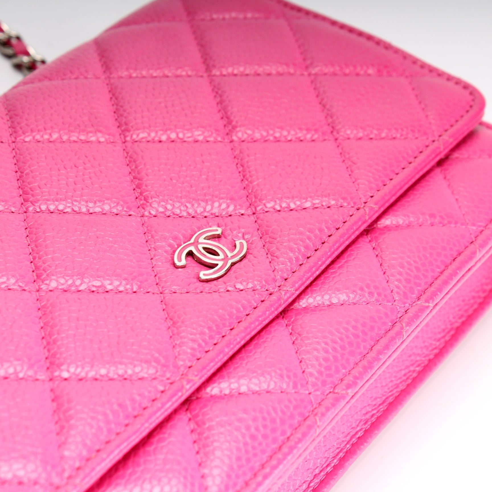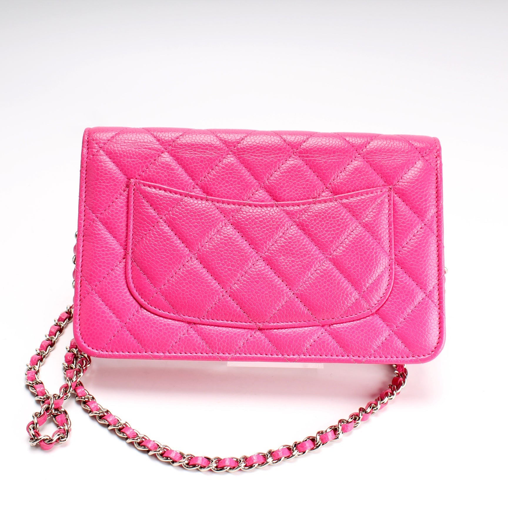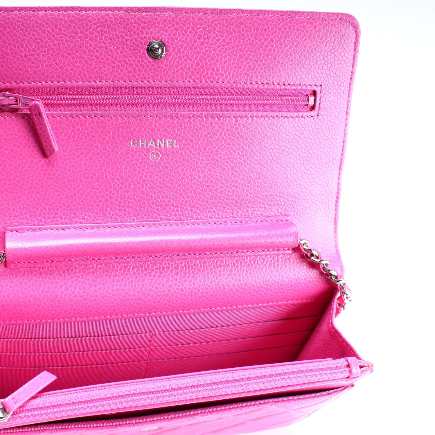 This Chanel Wallet On Chainis eye catching bag. The exterior is in the classic Chanel Caviar leather.