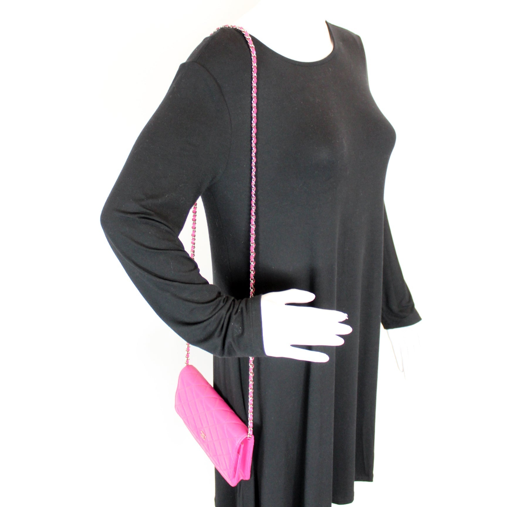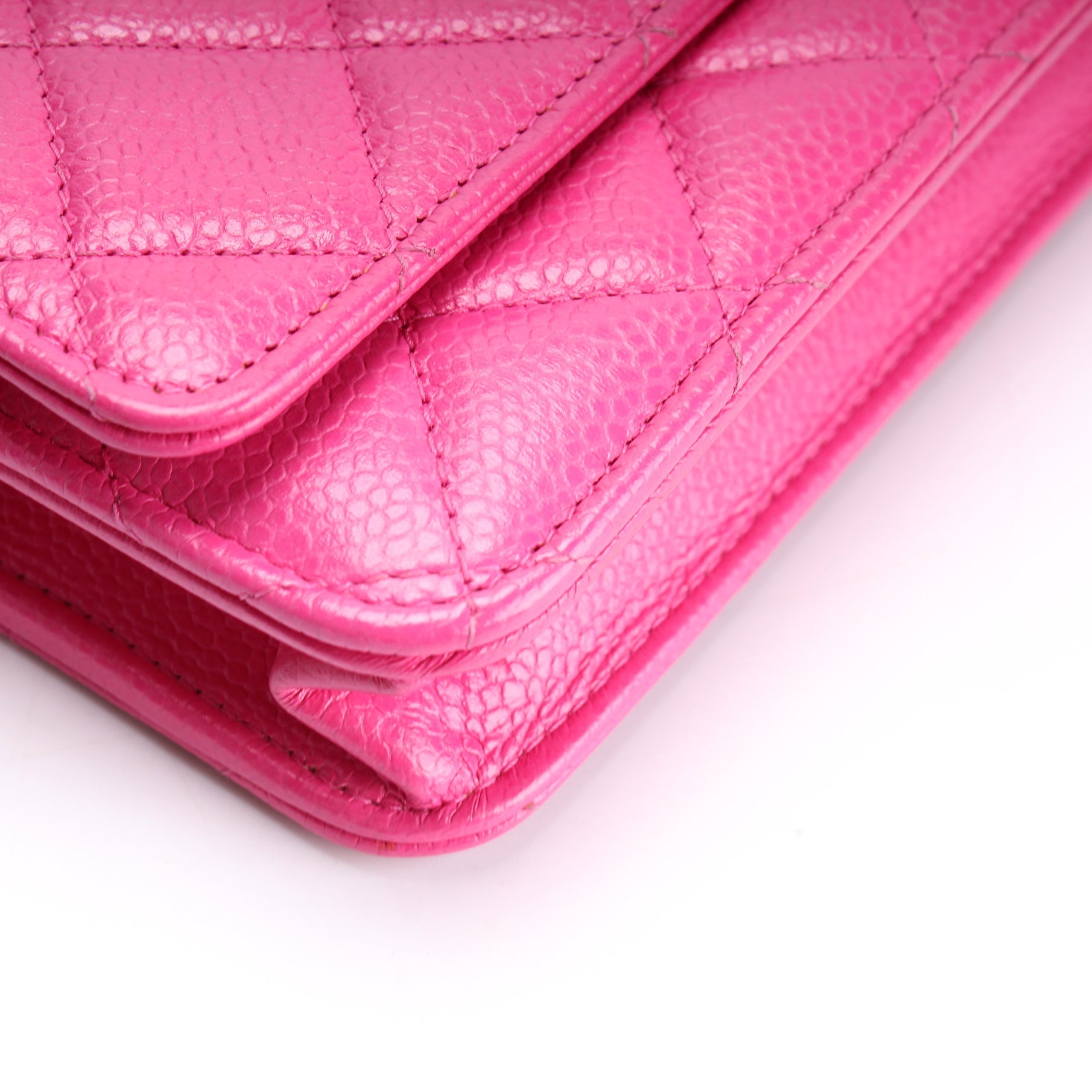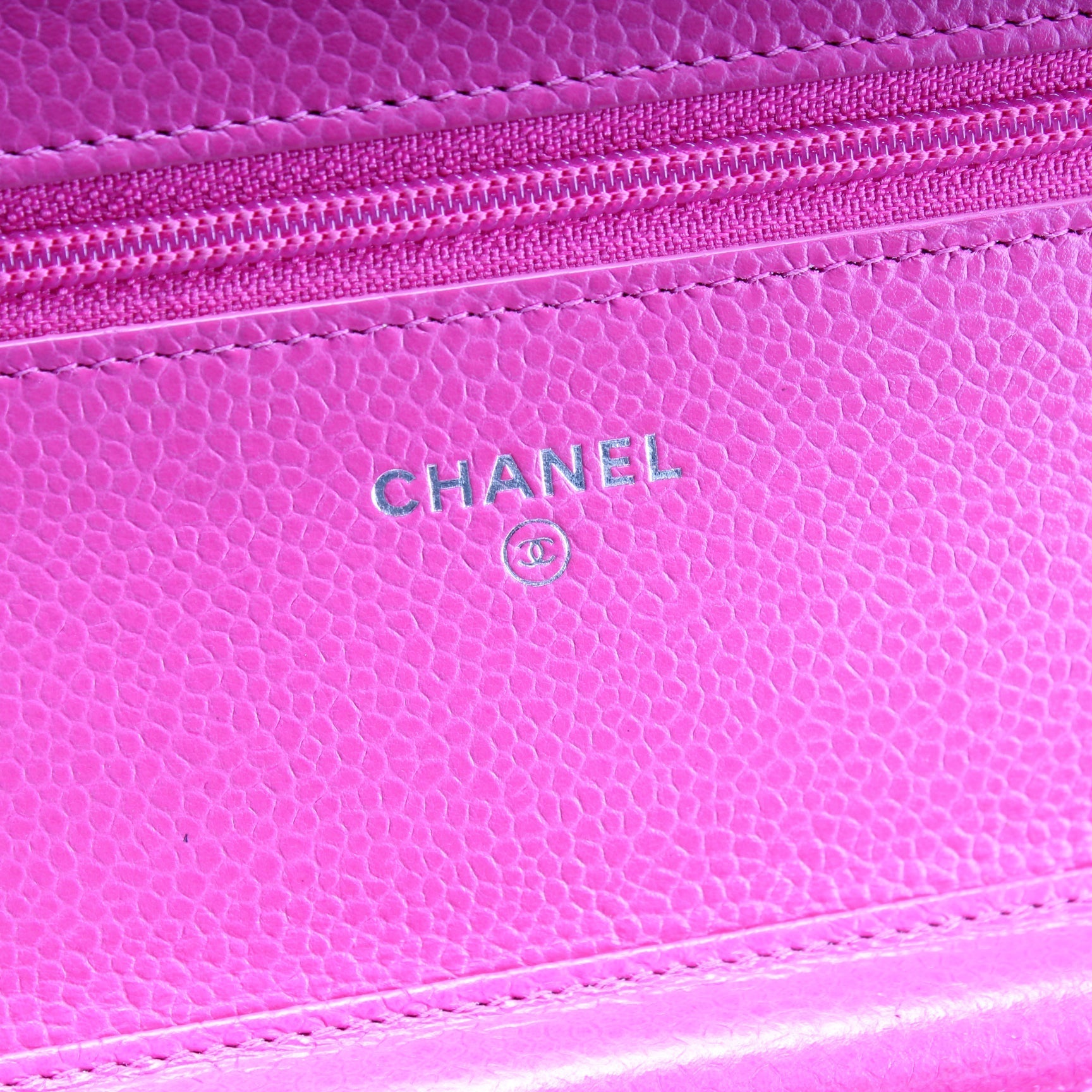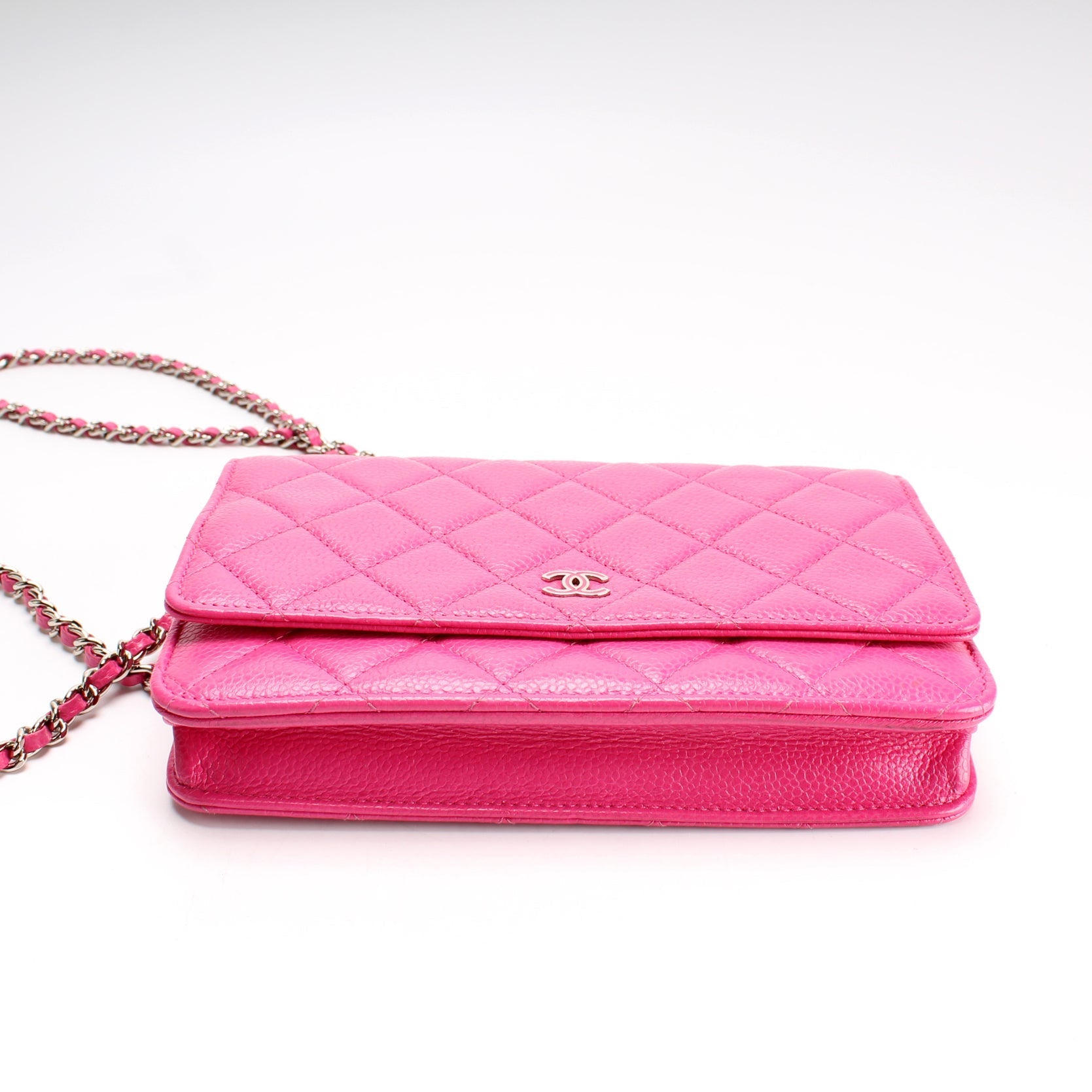 This Chanel Wallet On Chainis eye catching bag. The exterior is in the classic Chanel Caviar leather.