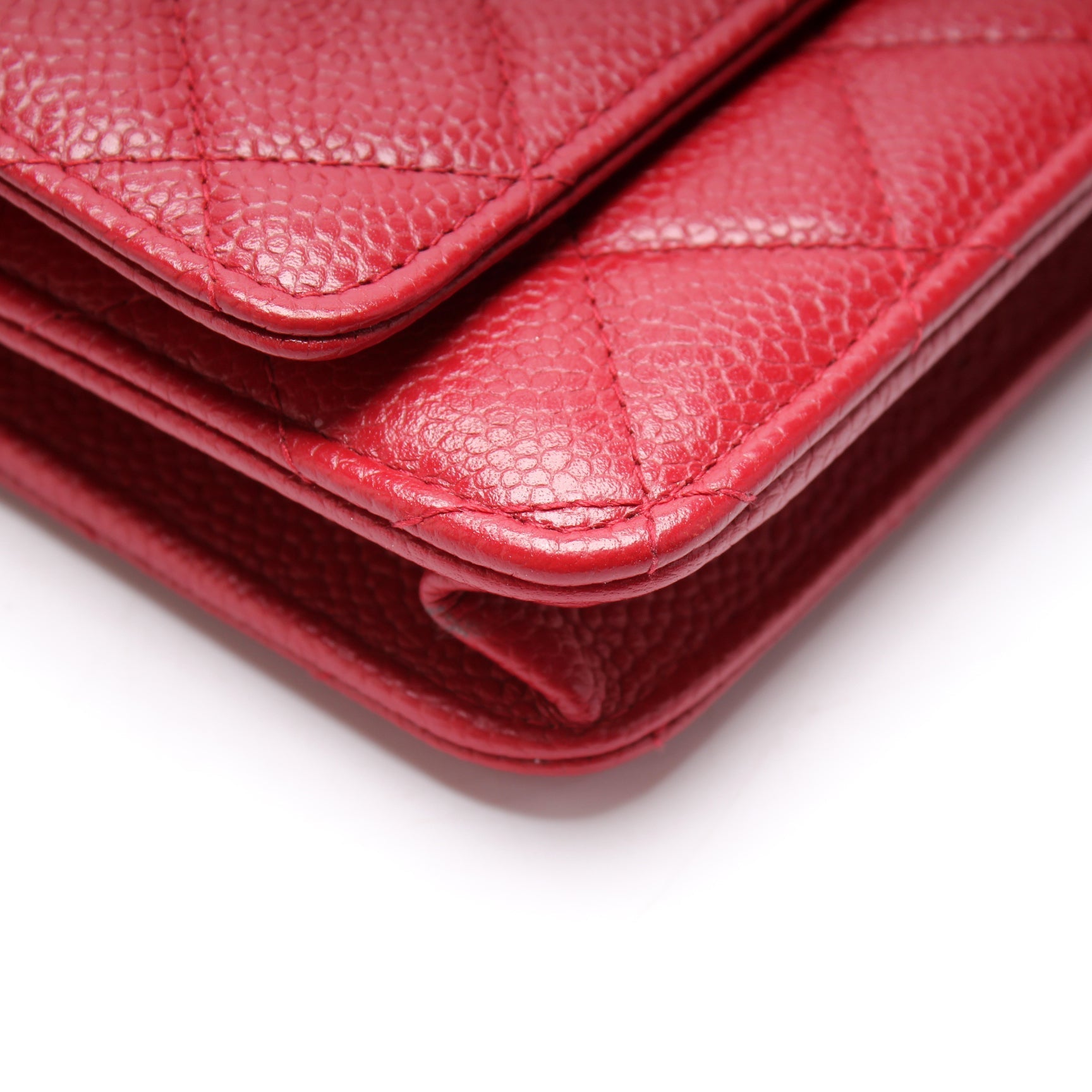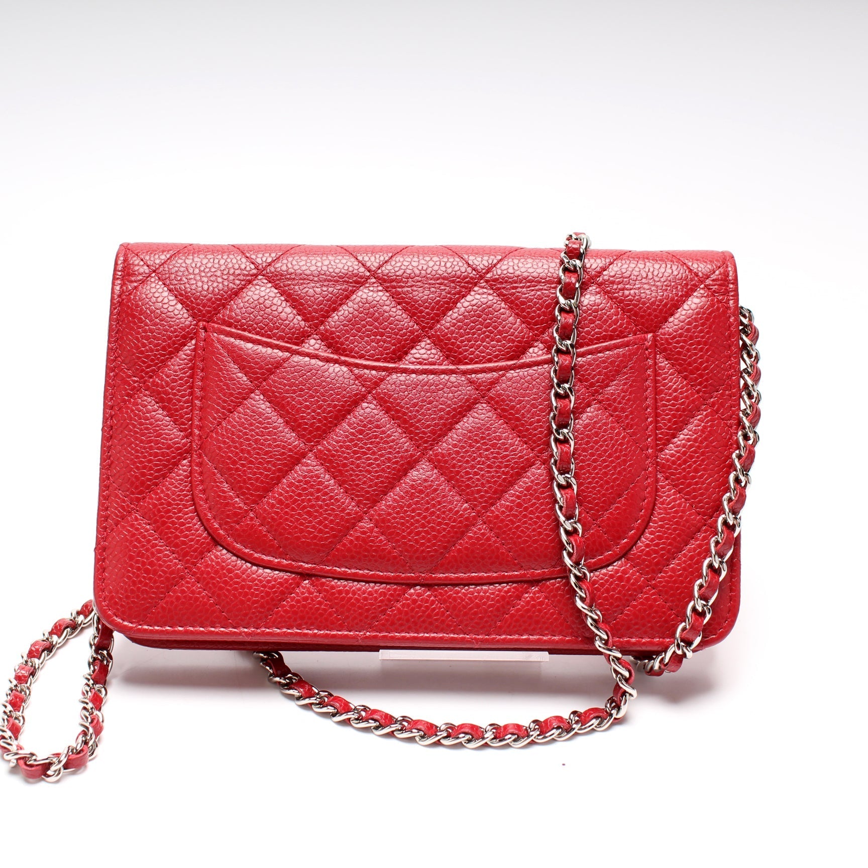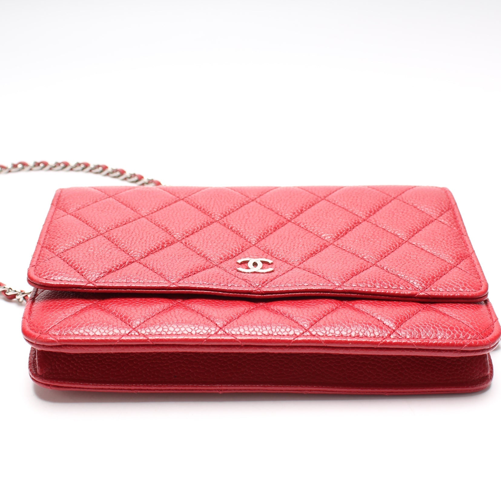 This Chanel Wallet On Chain Classicis eye catching bag. The exterior is in the classic Chanel Quilted Caviar leather.