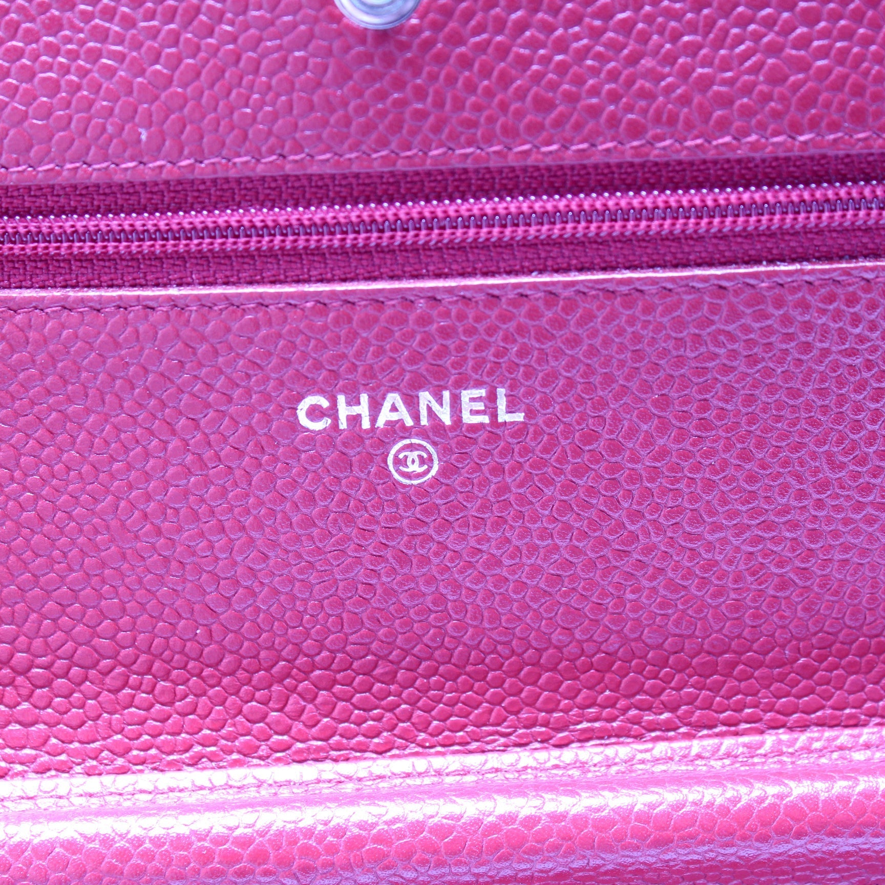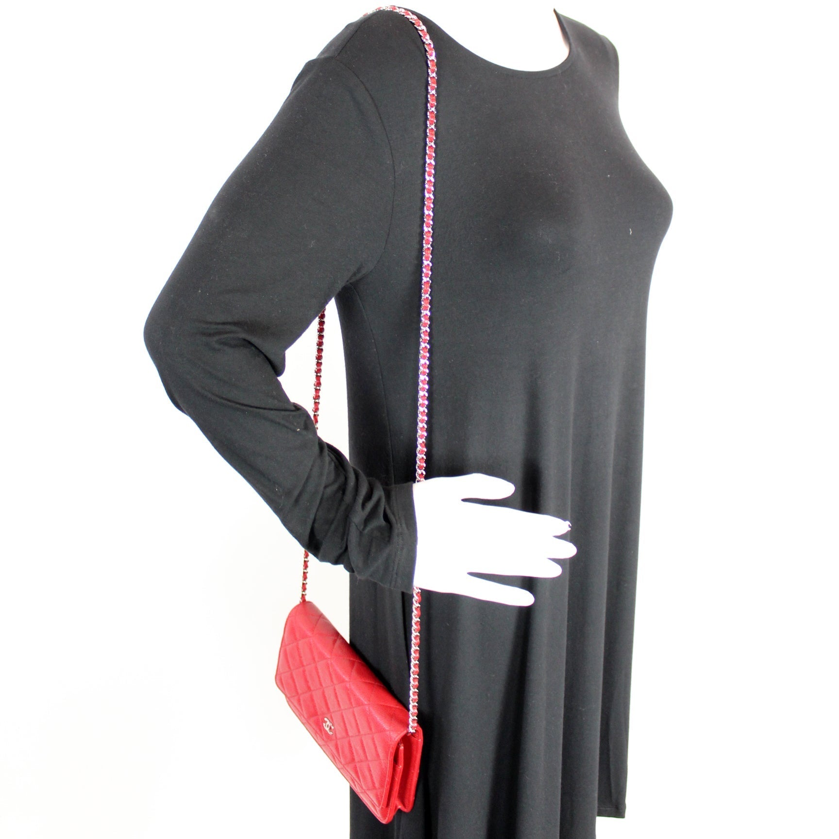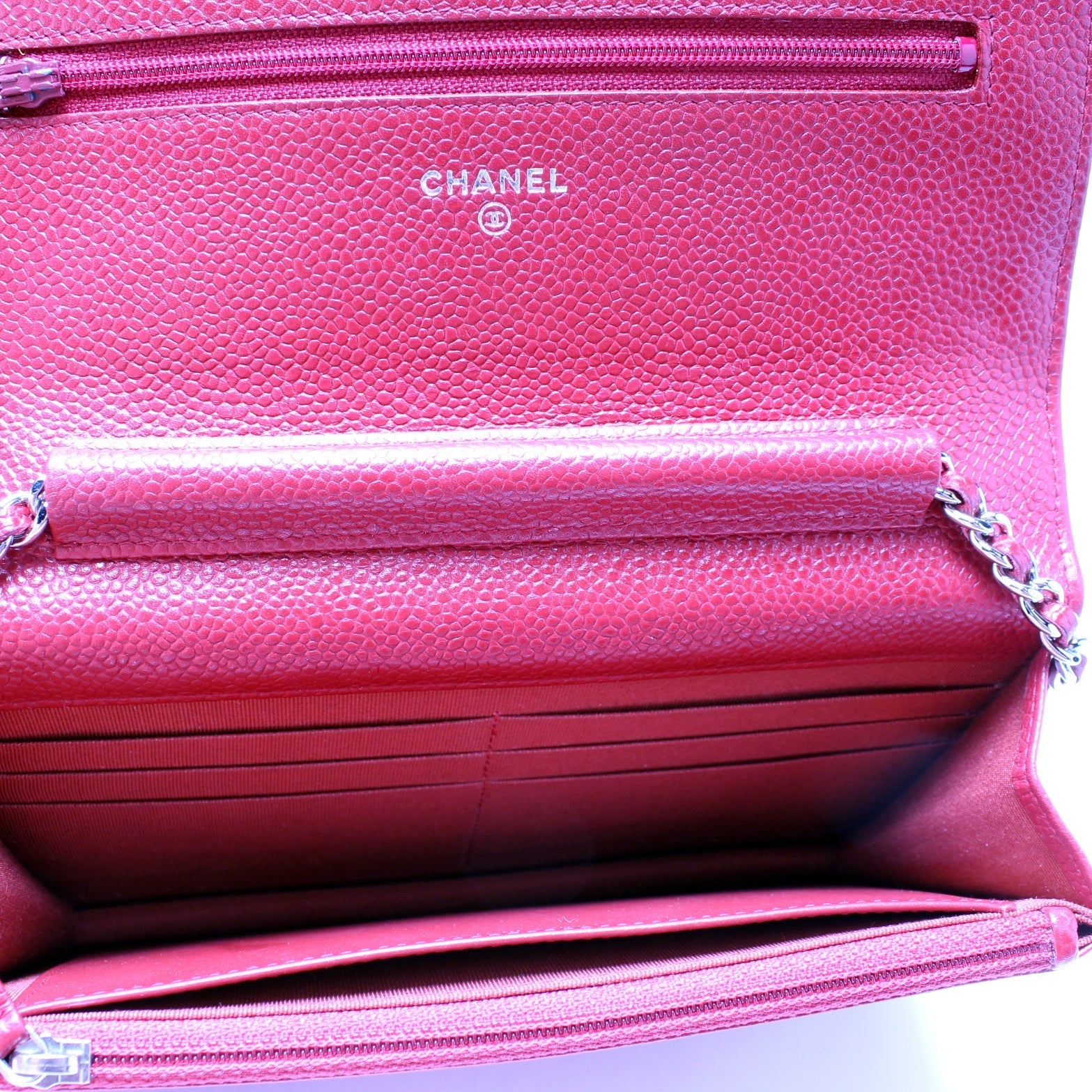 This Chanel Wallet On Chain Classicis eye catching bag. The exterior is in the classic Chanel Quilted Caviar leather.