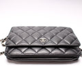 This Chanel WOC Classic Quiltedis eye catching bag. The exterior is in the classic Chanel Lambskin leather.