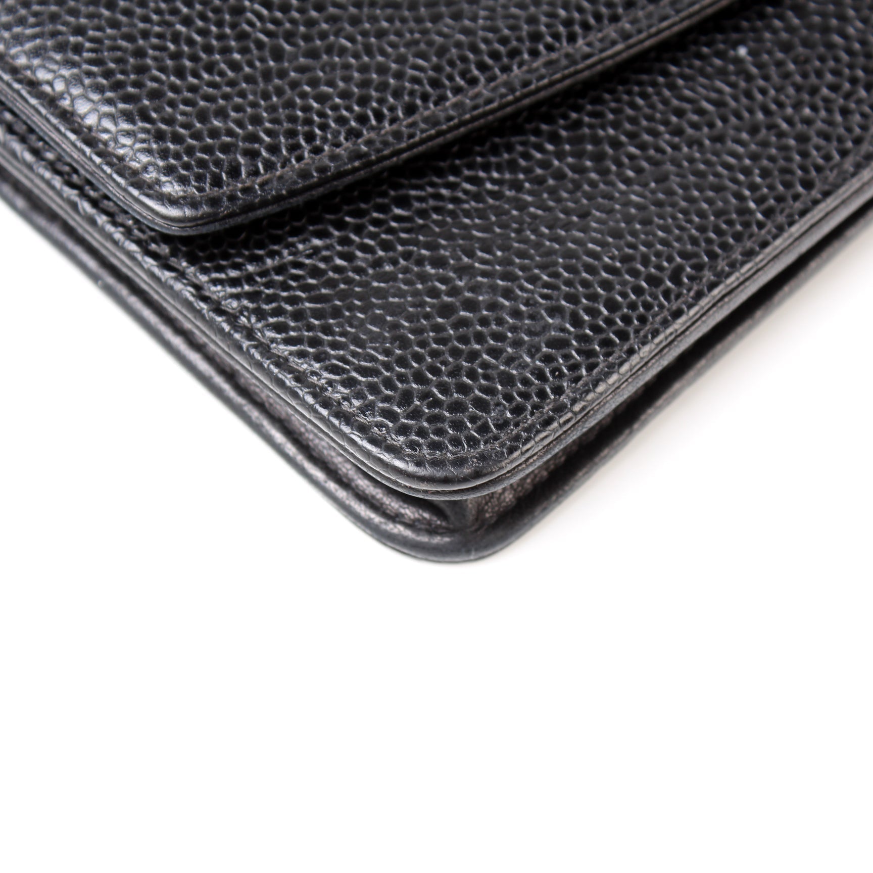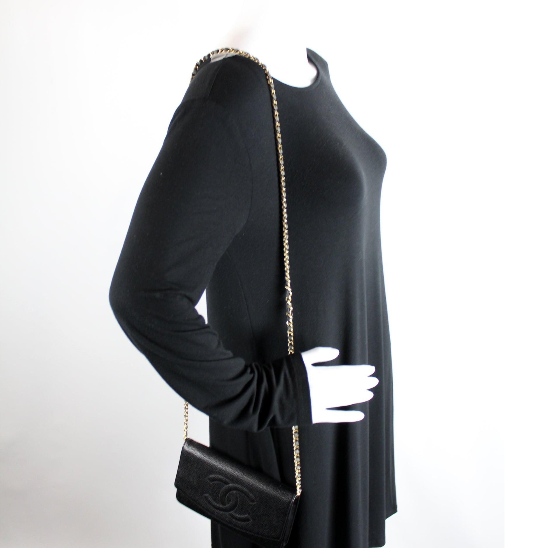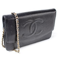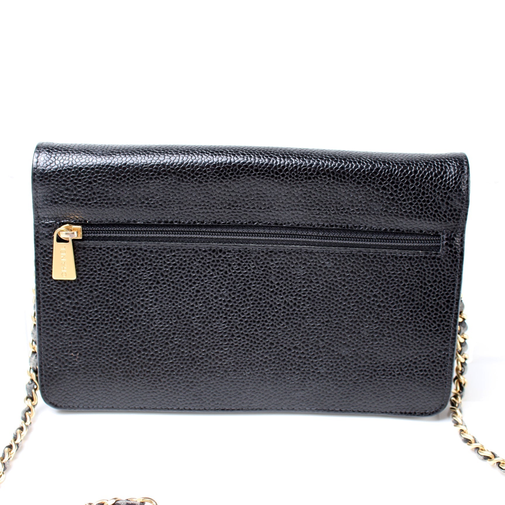 This Chanel WOC Timeless CCis eye catching bag. The exterior is in the classic Chanel Caviar leather.