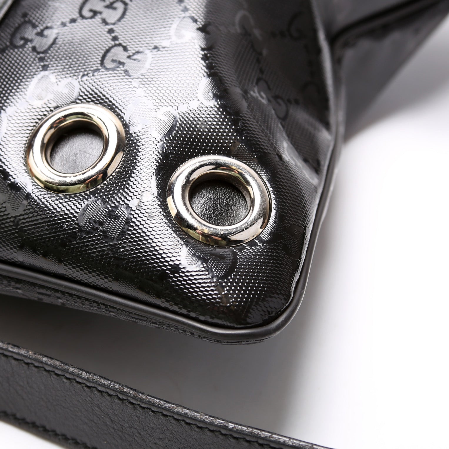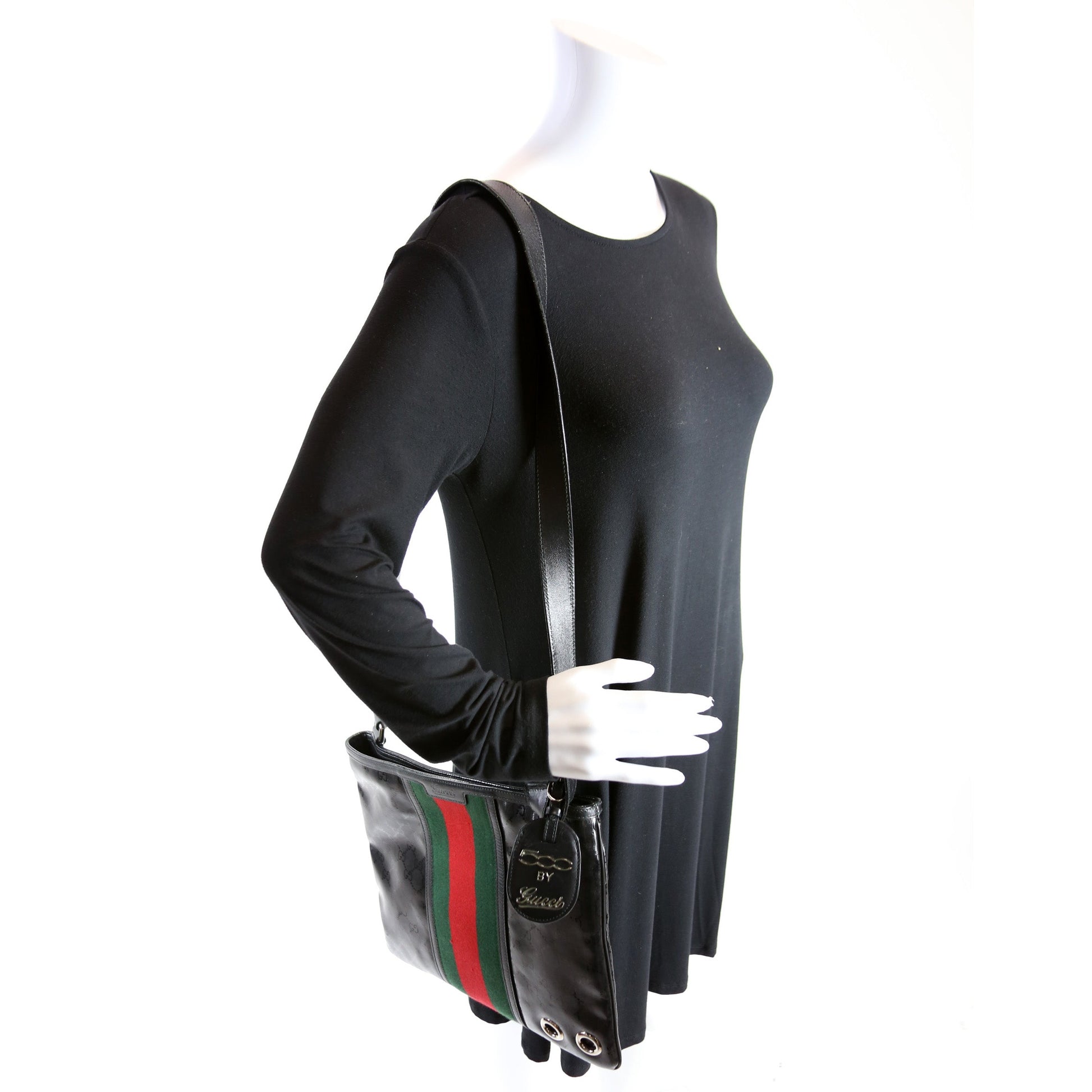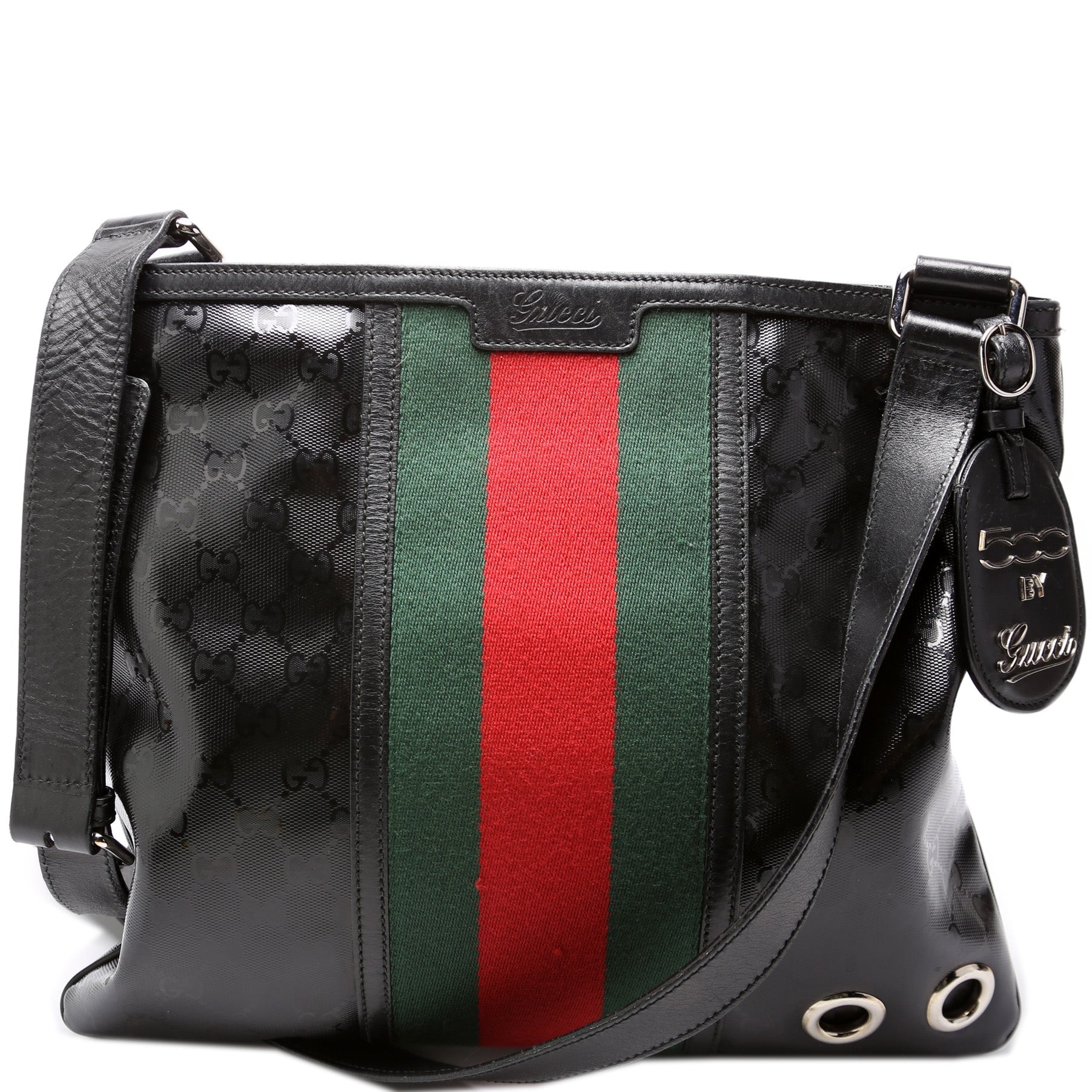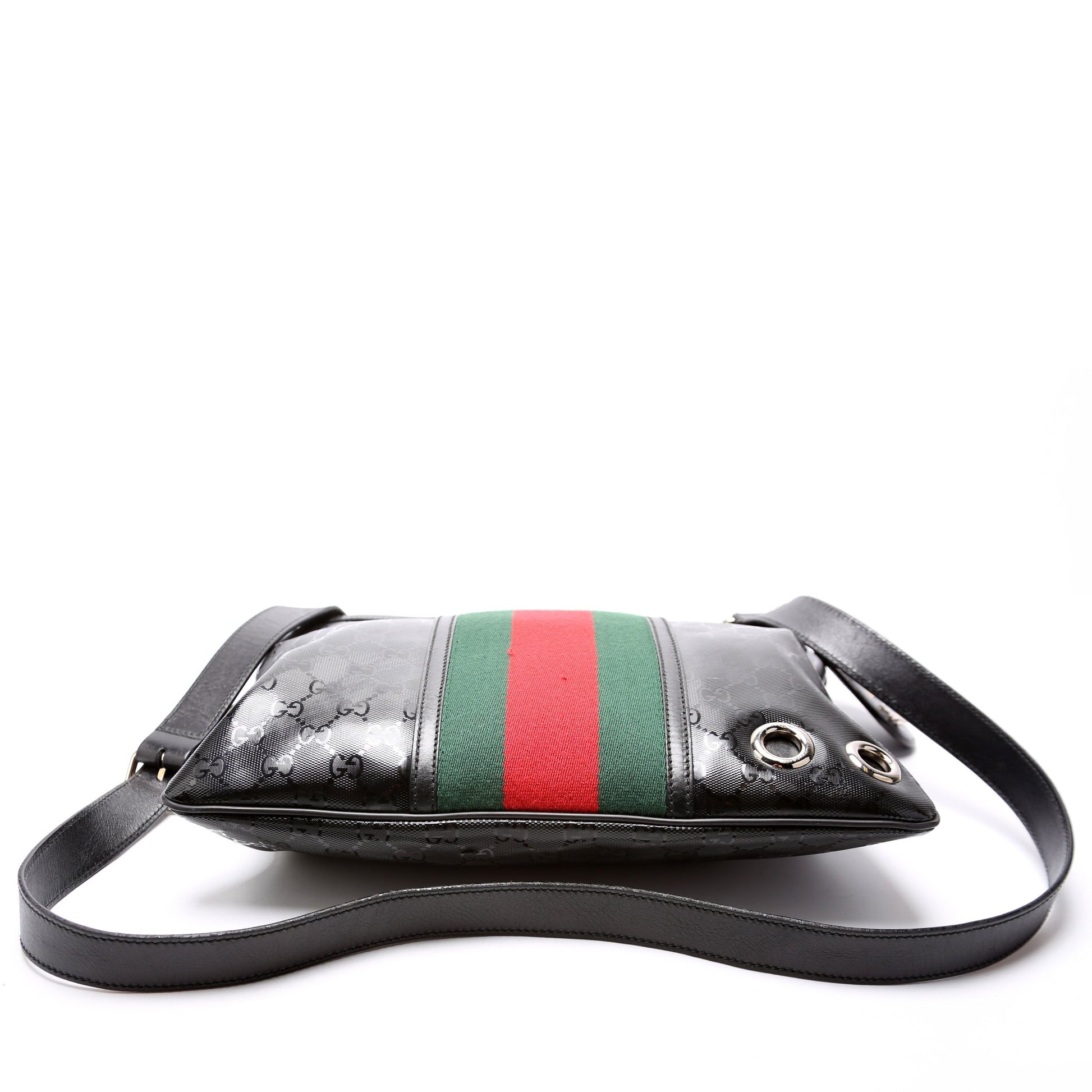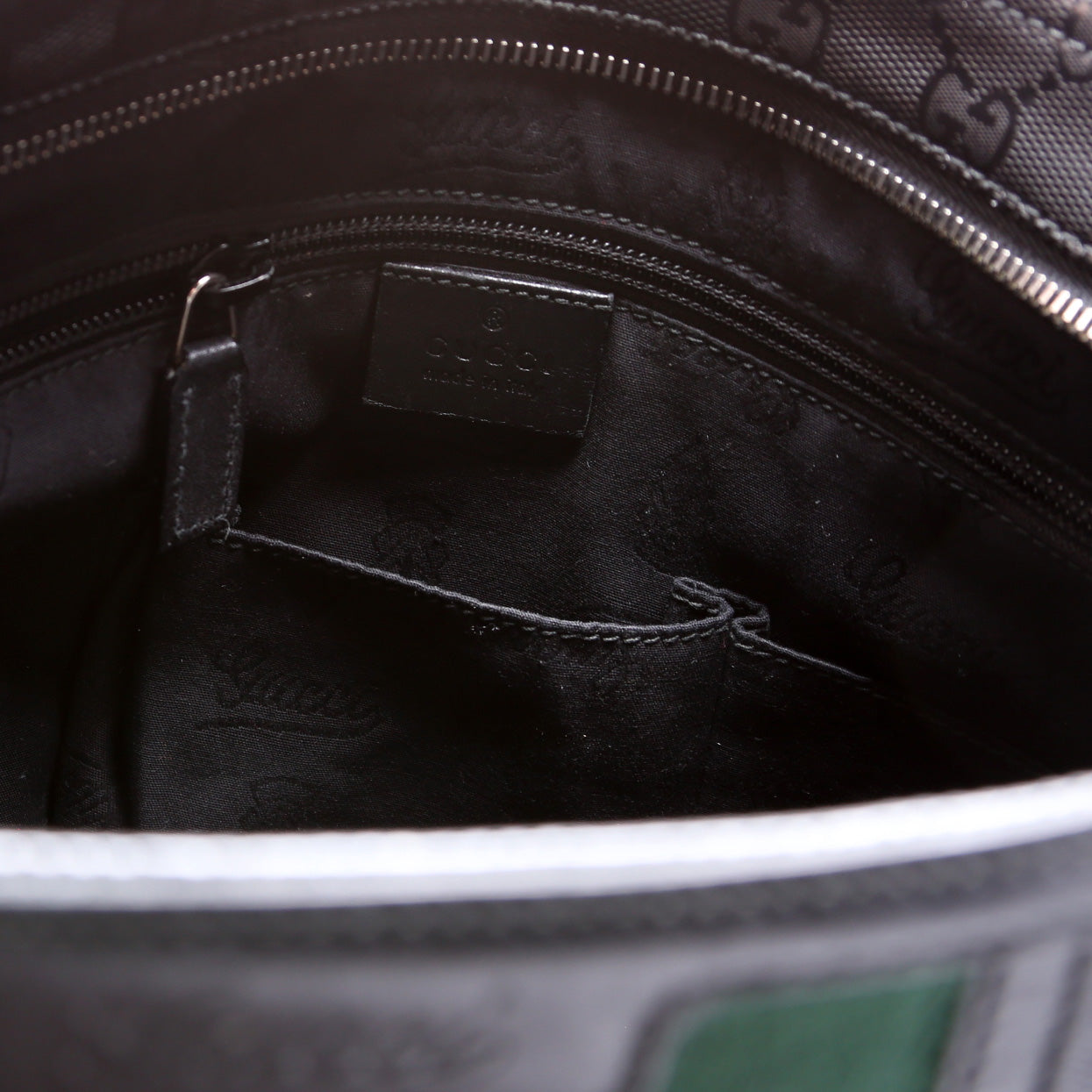 This Gucci X Fiat 500 GG Web Flat Messengeris eye catching bag. The exterior is in the classic Gucci GG Imprime.