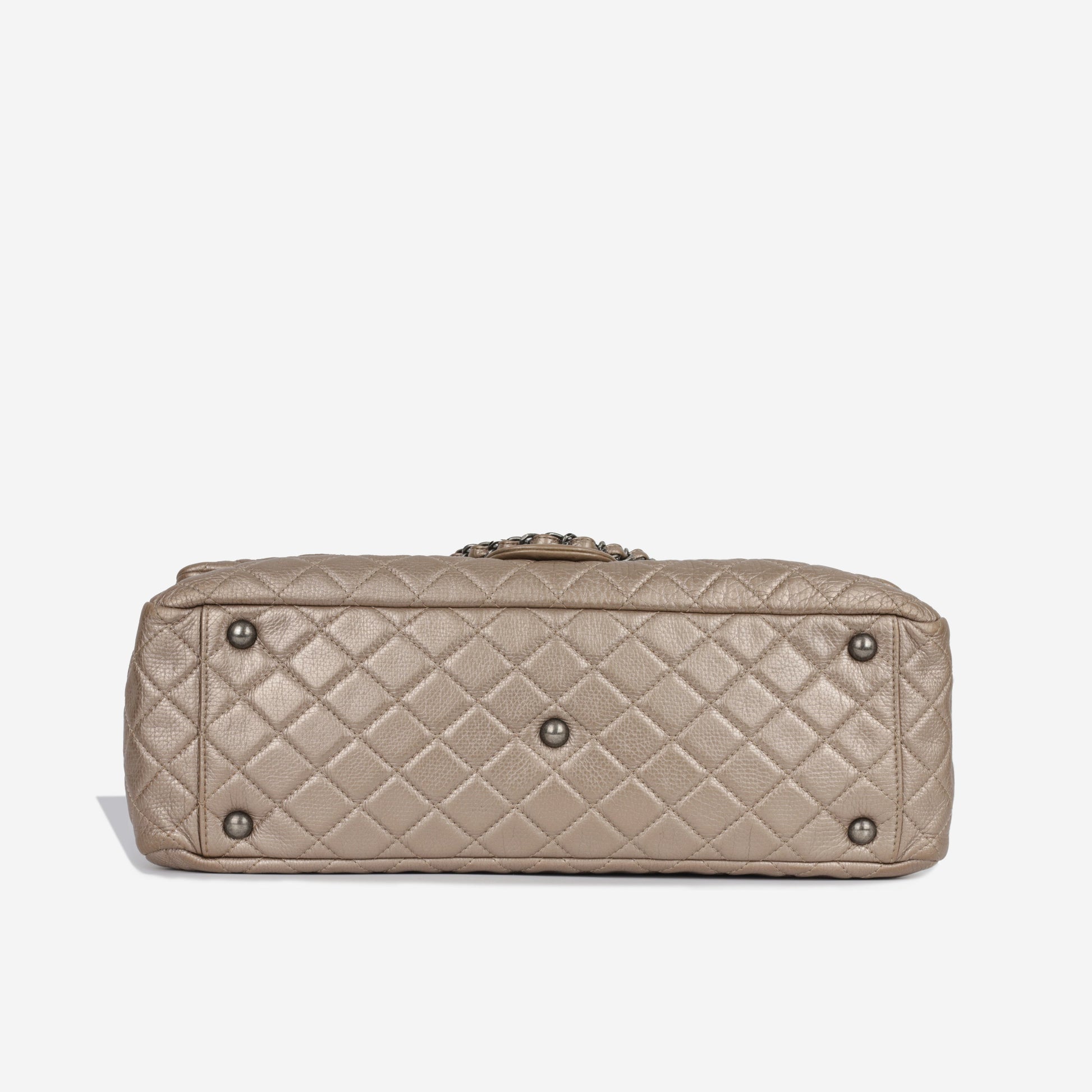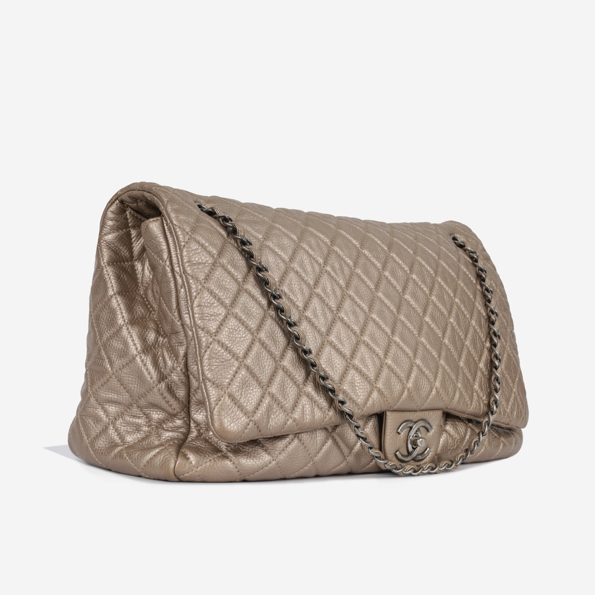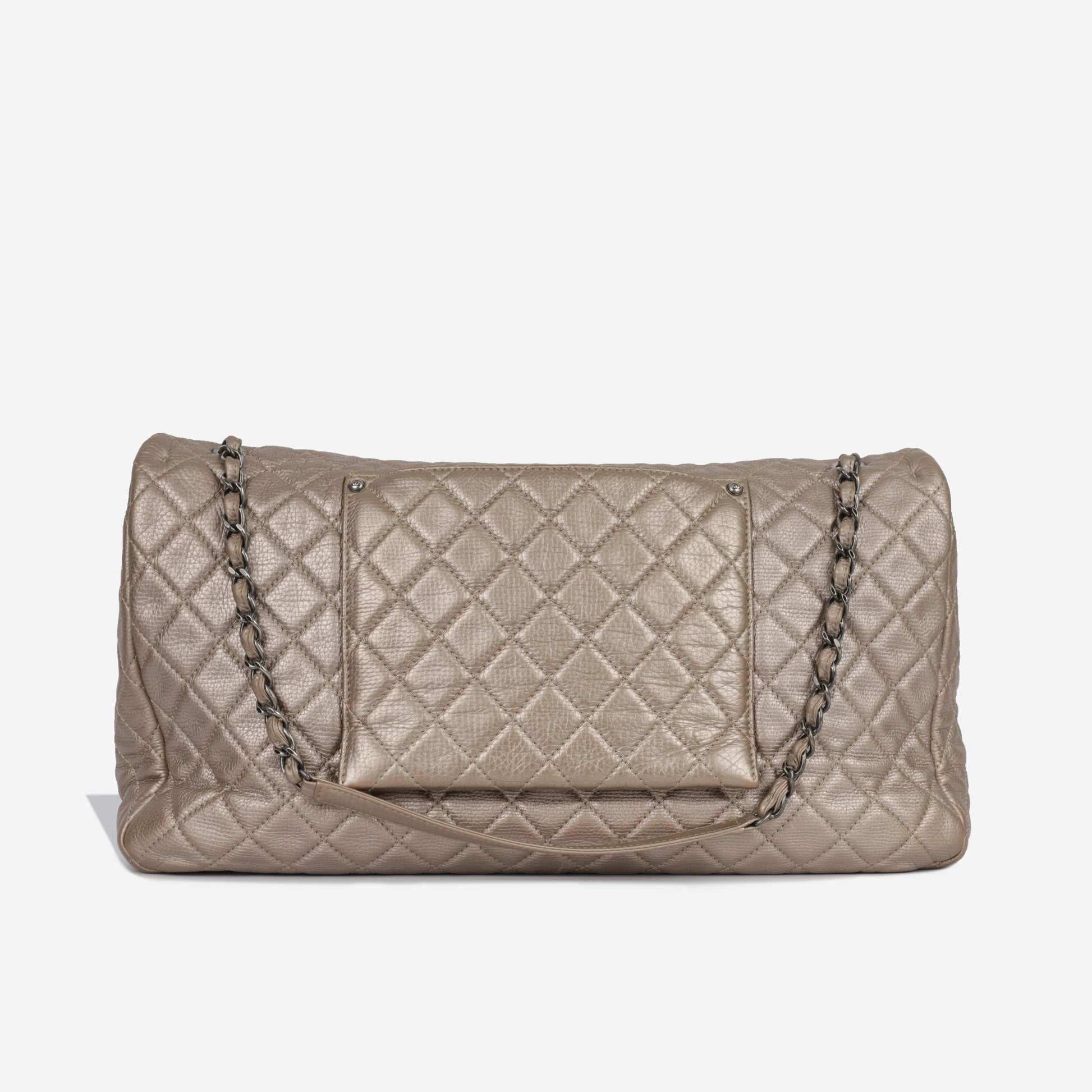 Crafted from metallic quilted calfskin leather, Chanel presents their XXL Flap bag. For those that prefer a slouchy look, this bag has enough space to fit everything you would ever need to bring with you. Use it as a carry on for your flight, or whether you're off to work or running errands, this Chanel is the perfect companion to accompany you.