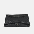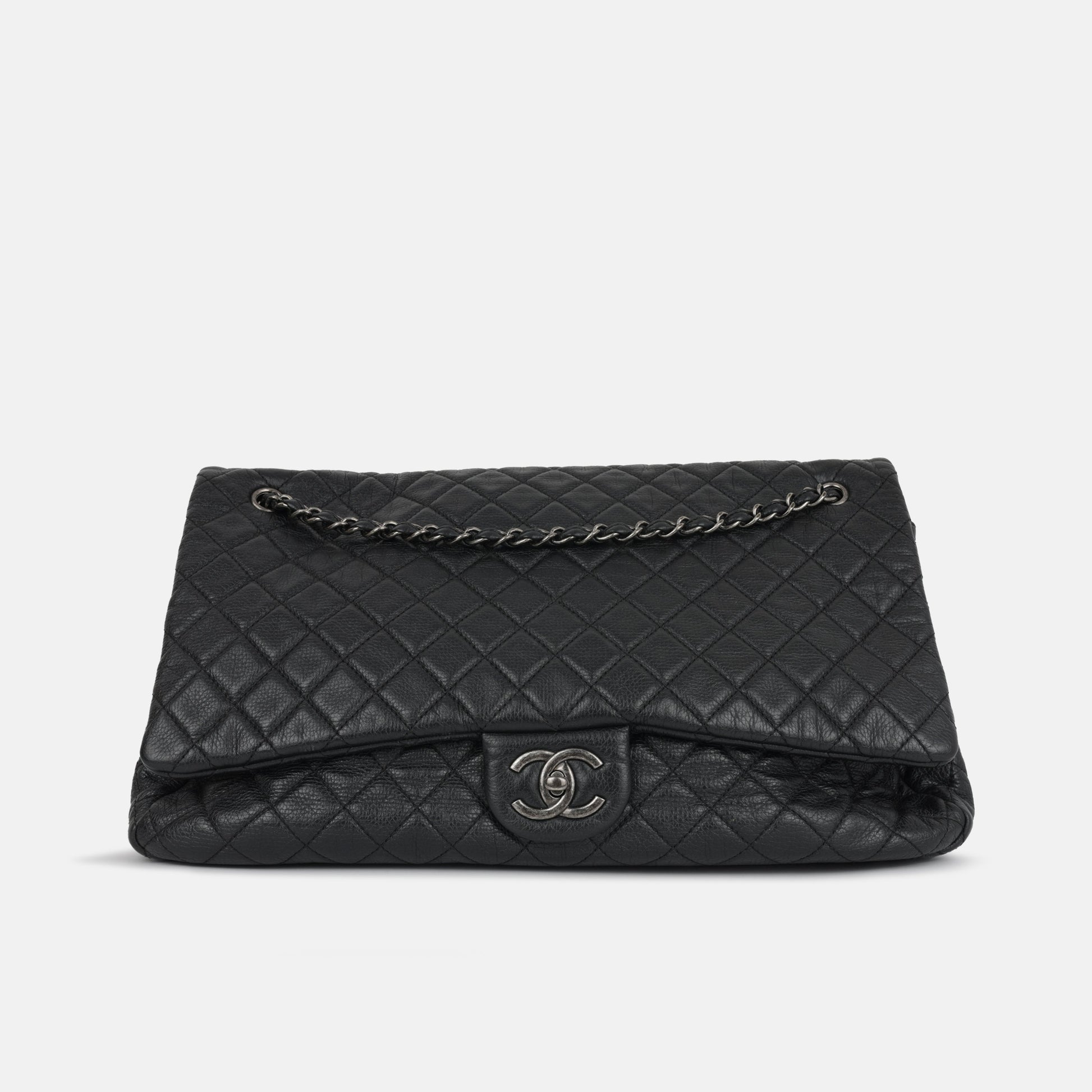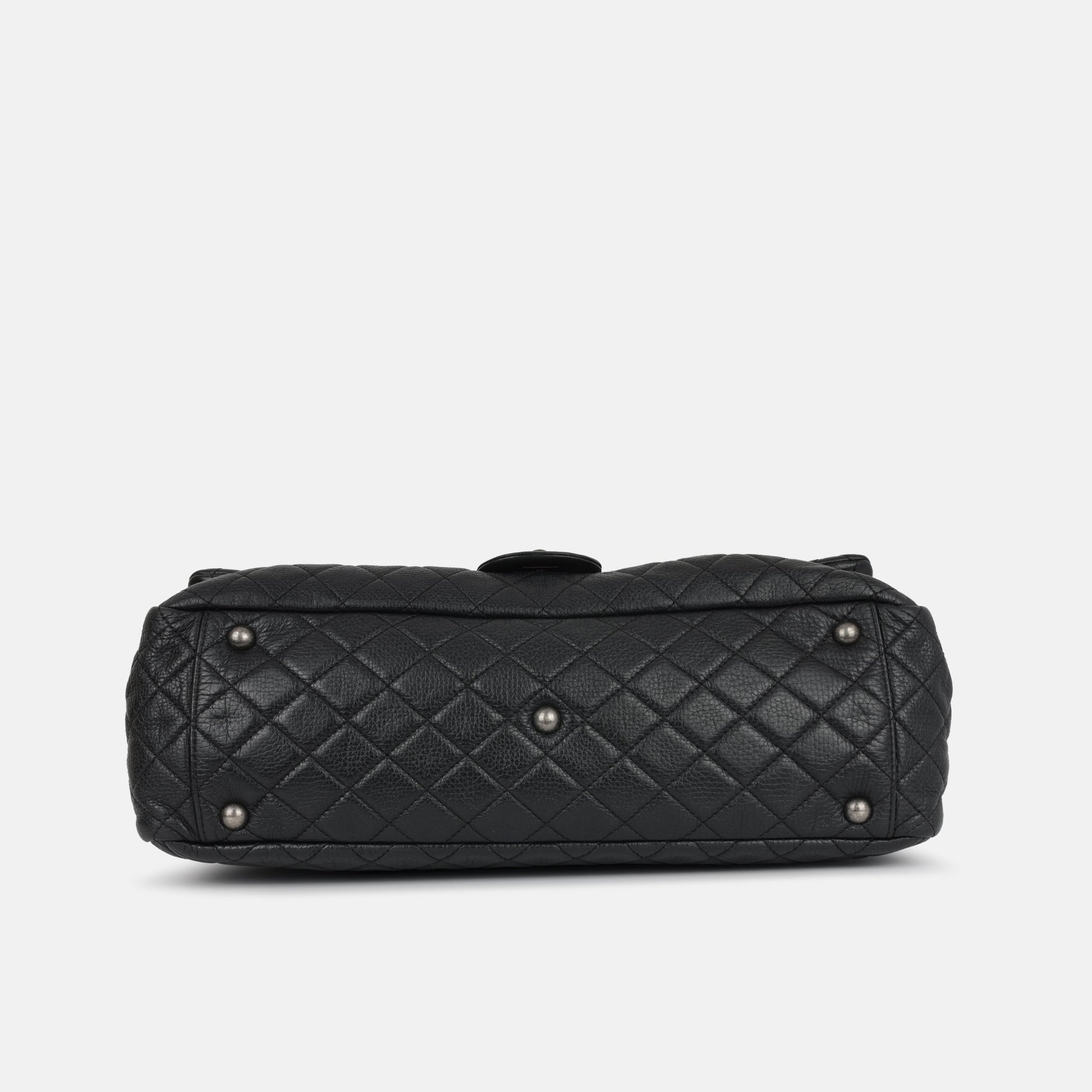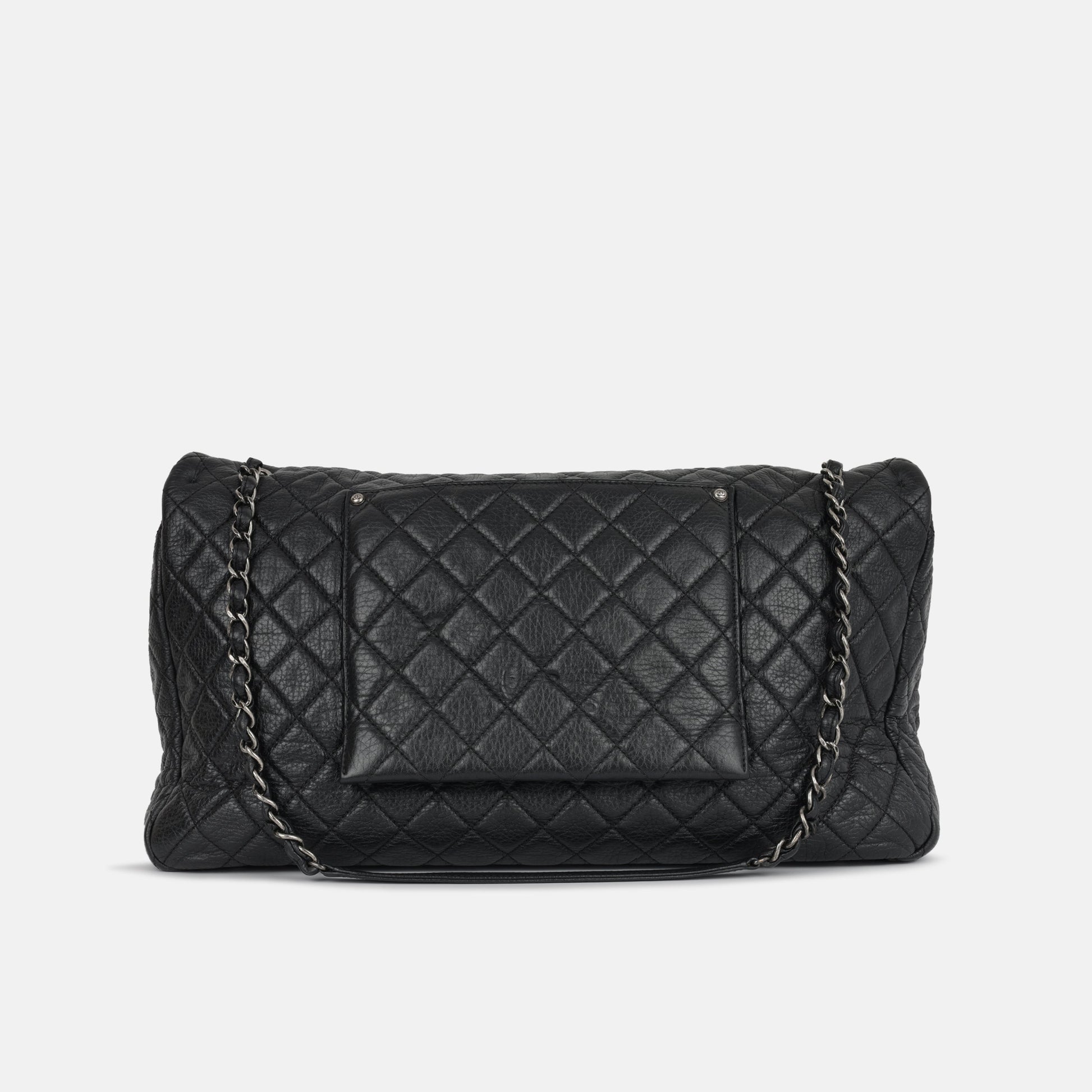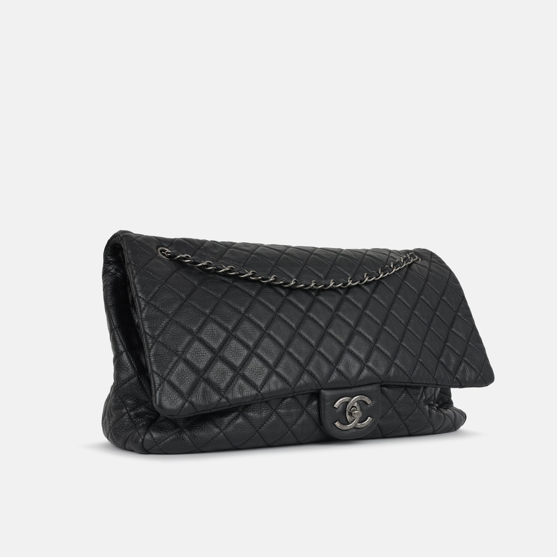 Crafted from black quilted calfskin leather, Chanel presents their XXL Flap bag. For those that prefer a slouchy look, this bag has enough space to fit everything you would ever need to bring with you. Use it as a carry on for your flight, or whether you're off to work or running errands, this Chanel is the perfect companion to accompany you.